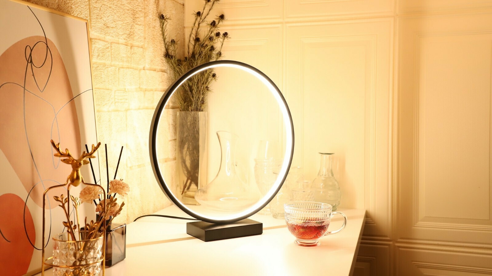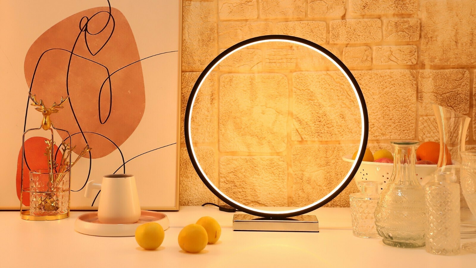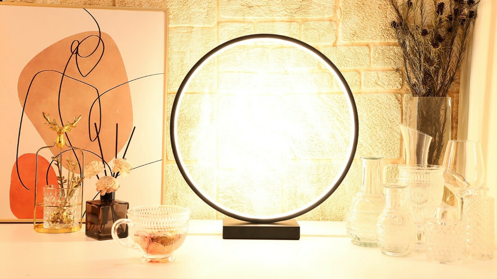 Είναι εξοπλισμένο με τρία επίπεδα ρυθμιζόμενου φωτισμού, λαμπερό λευκό φως, φυσικό φως και ζεστό κίτρινο φως. Με διάμετρο 35 εκατοστά και βάρος 1200 γραμμάρια είναι μια λεπτή αλλά στιβαρή μίνιμαλ κατασκευή. Μπορεί να χρησιμοποιηθεί και σαν υποστηρικτικός φωτισμός που αναδεικνύει ένα έργο τέχνης ή ένα ενδιαφέρον αντικείμενο.