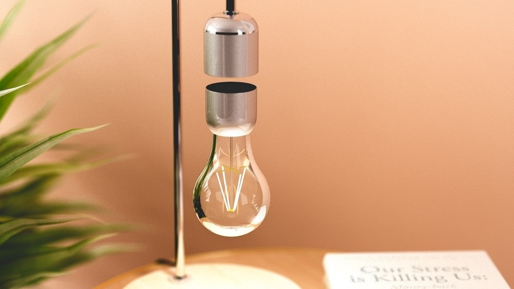 Χάρη σε κρυφούς μαγνήτες η λάμπα αυτή αιωρείται στον αέρα. Ο “γλόμπος” αιωρείται είτε είναι αναμμένος είτε όχι, δημιουργώντας ένα πολύ ξεχωριστό θέαμα στο γραφείο σου. Με ένα απλό άγγιγμα το φωτιστικό σου ανάβει ή σβήνει ενώ η λάμπα του εξακολουθεί να αιωρείται.
