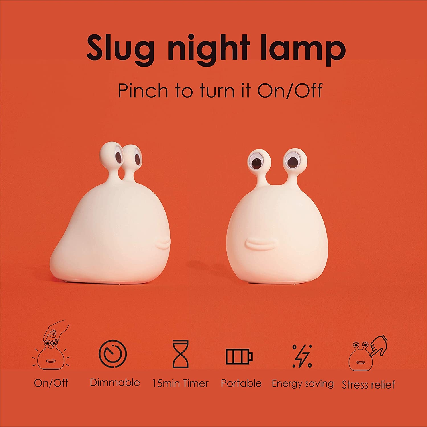 Το Allocacoc Slug Night Lamp είναι εμπνευσμένο από τη φύση, το λαμπάκι νυχτός με σχήμα ενός γλυκού γυμνοσάλιαγκα, τοποθετείται δίπλα στο παιδικό κρεβάτι και βοηθάει το παιδί να χαλαρώσει πριν κοιμηθεί και να ξεπεράσει το φόβο του στο σκοτάδι.