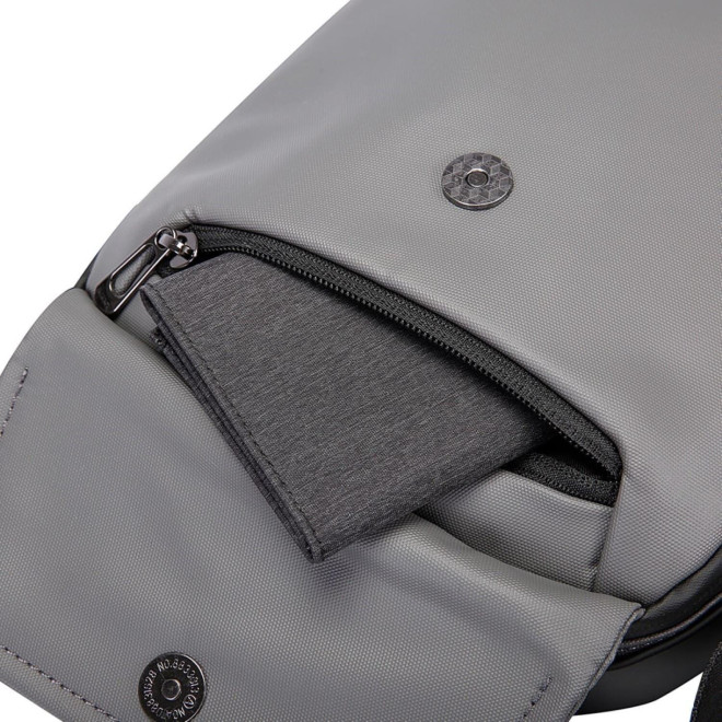 Το εξωτερικό περίβλημα της τσάντας είναι αδιάβροχο, ενώ είναι σχεδιασμένη με κορυφαίας ποιότητας Smoothly YKK custom φερμουάρ. Το κύριο υλικό αυτής της τσάντας είναι επίσης αδιάβροχο, έτσι μπορεί να προστατεύσει καλά τα ηλεκτρονικά σας σε μια βροχή. Η κύρια τσέπη μπορεί να χωρέσει μία διπλωμένη ομπρέλα ή ένα μπουκάλι νερού 500ml, ενώ έχει και ένα εσωτερικό διαμέρισμα για ipad 8.6 ιντσών.