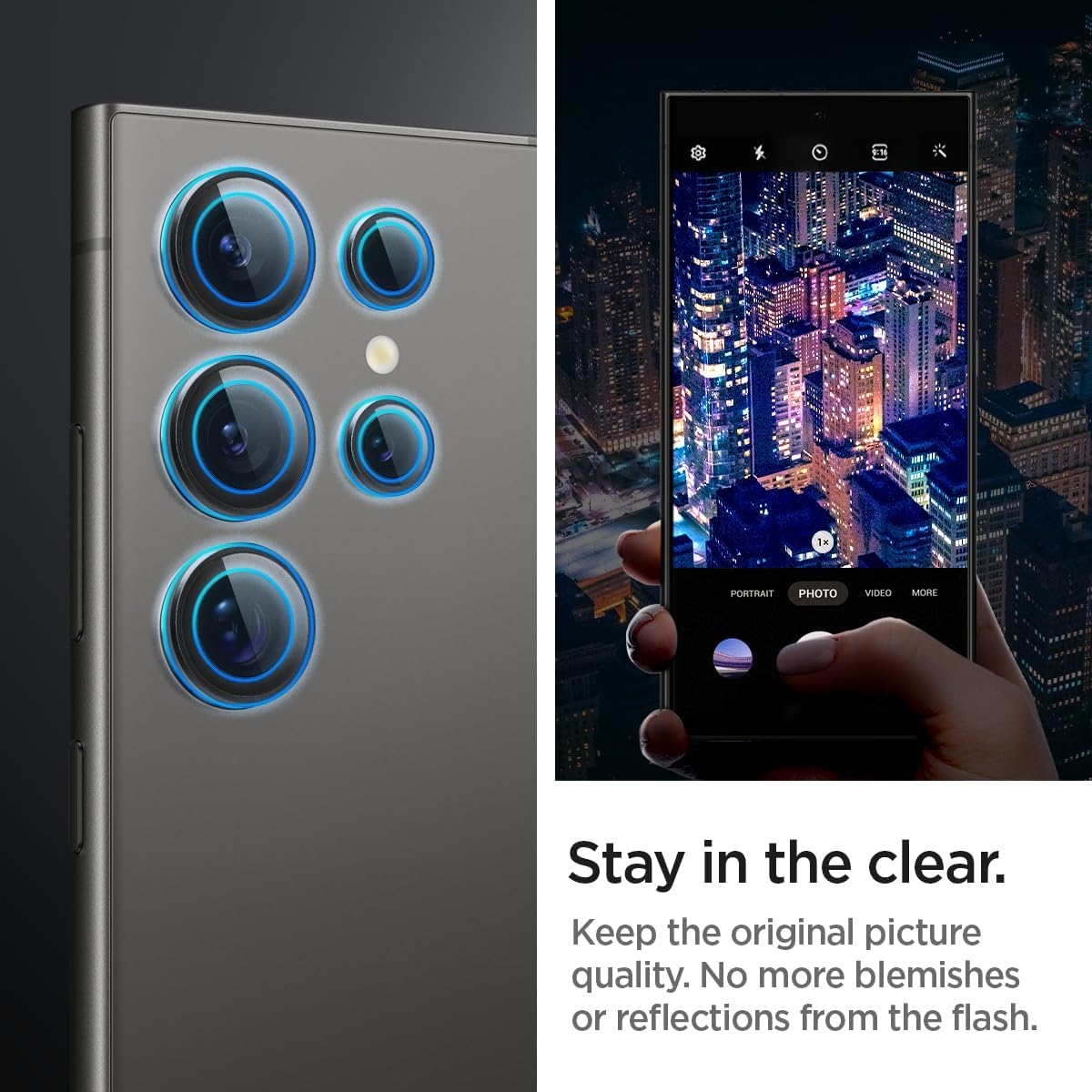 Το αντιχαρακτικό γυάλινο Tempered Glass GLAS.tR EZ Fit OPTIK Pro της Spigen, είναι ειδικά σχεδιασμένο για τον φακό της κάμερας του Samsung Galaxy S24 Ultra και είναι κατασκευασμένο από γυαλί που διαθέτει υψηλό συντελεστή προστασίας, με σκληρότητα 9Η, προκειμένου να αποφεύγεται η θραύση του γυαλιού ή το σπάσιμό του.