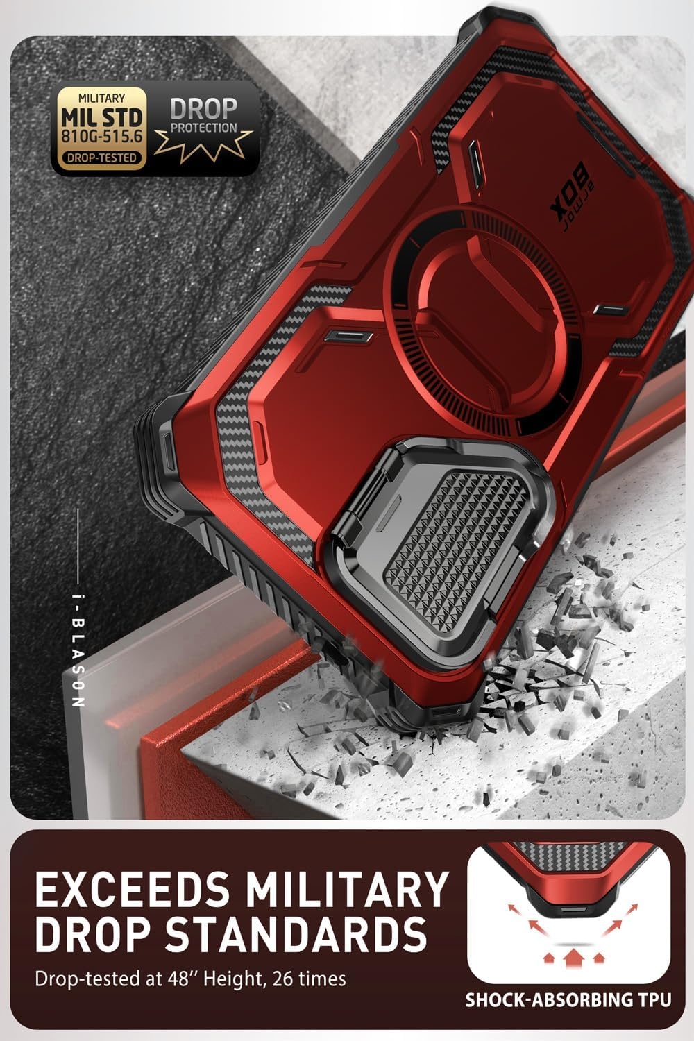 Η ανθεκτική MagSafe θήκη i-Blason Armorbox Mag από την Supcase είναι ειδικά σχεδιασμένη για το Samsung Galaxy S24. Έχει κατασκευαστεί από ένα συνδυασμό μαλακού TPU και πολυκαρβονικού πλαστικού PC, για να είναι εξαιρετικά ανθεκτική σε σκόνες, πτώσεις και χτυπήματα.