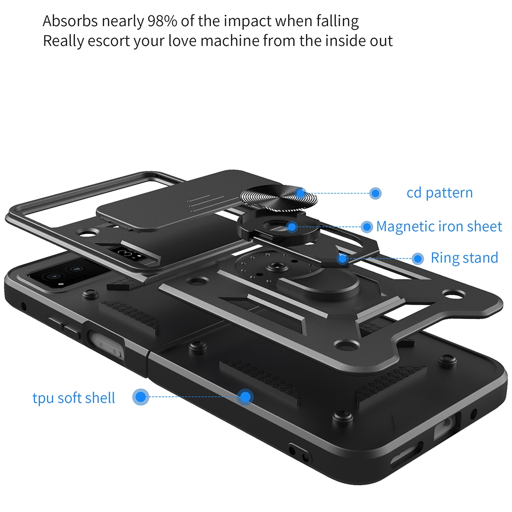 Στο πίσω μέρος διαθέτει συρόμενο προστατευτικό κάλυμμα για την κάμερα, ώστε να την προστατεύει από γρατζουνιές κατά την καθημερινή χρήση. Έτσι, όταν θέλετε να τραβήξετε φωτογραφία ή βίντεο, το μόνο που έχετε να κάνετε είναι να σύρετε το κάλυμμα για να αποκαλυφθεί η κάμερα. Χάρη στο κάλυμμα, το γυαλί της κάμερας προστατεύεται από γρατσουνιές και ταυτόχρονα προστατεύεται το απόρρητο και η ασφάλεια των δεδομένων σας.