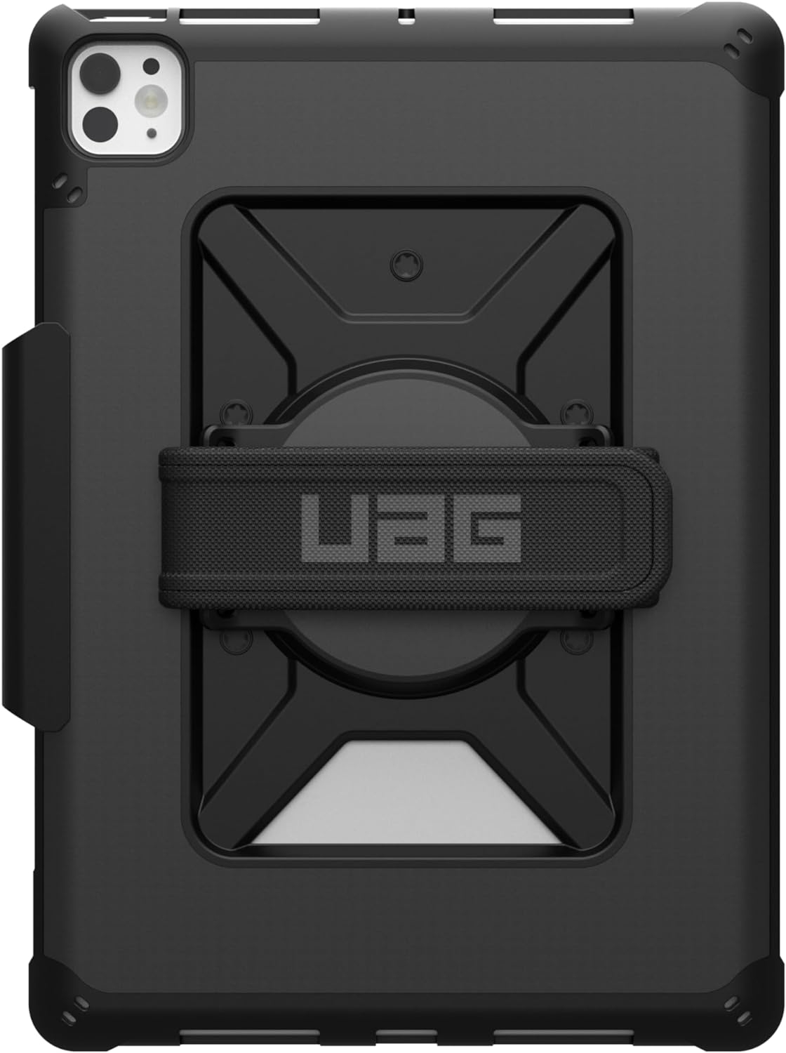 Το αντιολισθητικό απτικό εξωτερικό υλικό παρέχει ασφαλή χειρισμό, ενώ ο ενσωματωμένος περιστρεφόμενος ιμάντας καρπού 360 μοιρών, στην πλάτη της θήκης, με γάντζο και βρόχο προσφέρει σταθερό και άνετο κράτημα. Επιπλέον, η θήκη διαθέτει ειδικό χώρο αποθήκευσης για το Apple Pencil, ώστε να το έχετε πάντα κοντά σας.