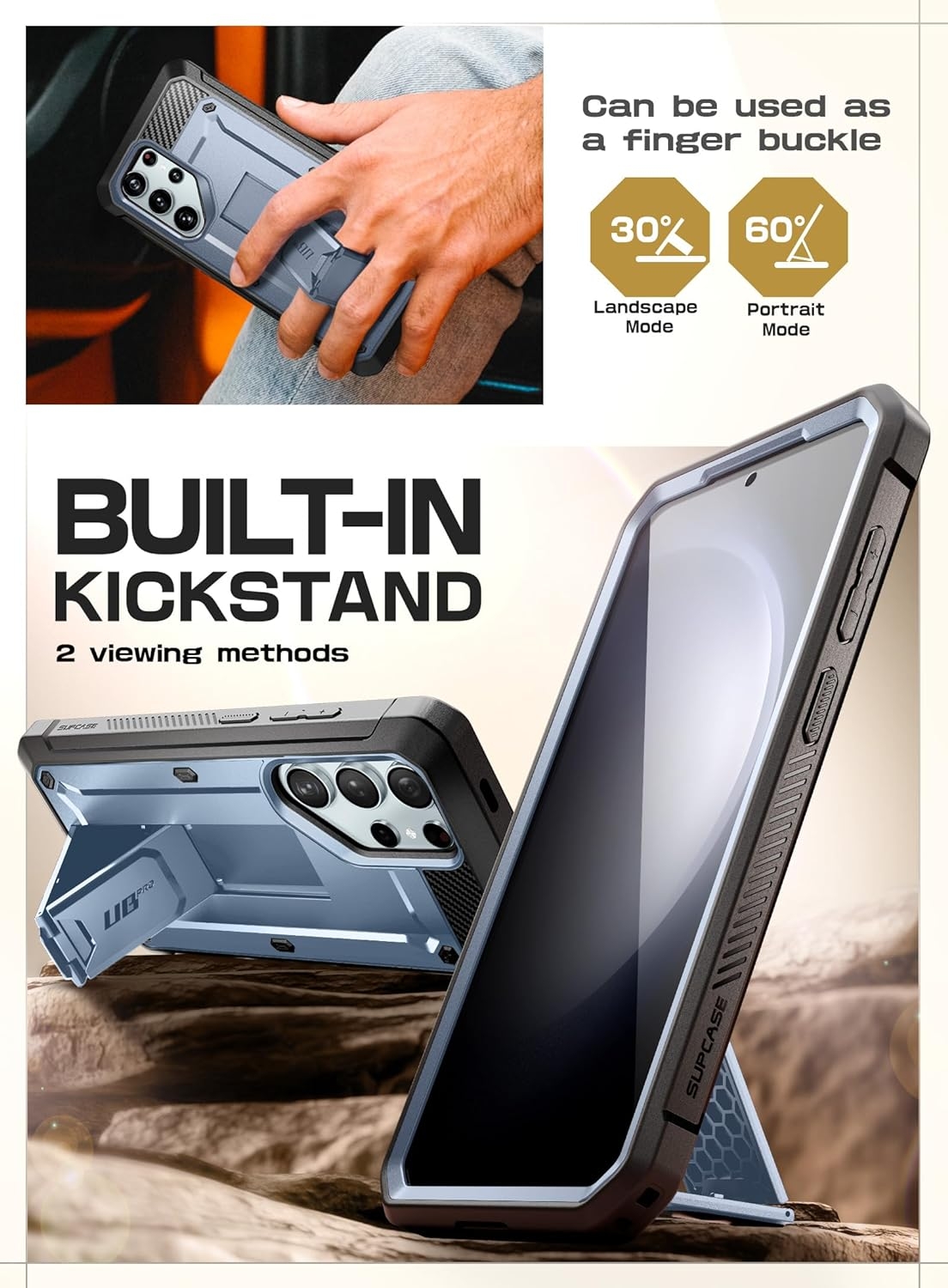 Η ανθεκτική και μοναδική θήκη Unicorn Beetle Pro από την Supcase είναι ειδικά σχεδιασμένη για το Samsung Galaxy S24 Ultra. Έχει κατασκευαστεί από ένα συνδυασμό μαλακού TPU και πολυκαρβονικού πλαστικού (PC), για να είναι εξαιρετικά ανθεκτική σε σκόνες, πτώσεις και χτυπήματα.