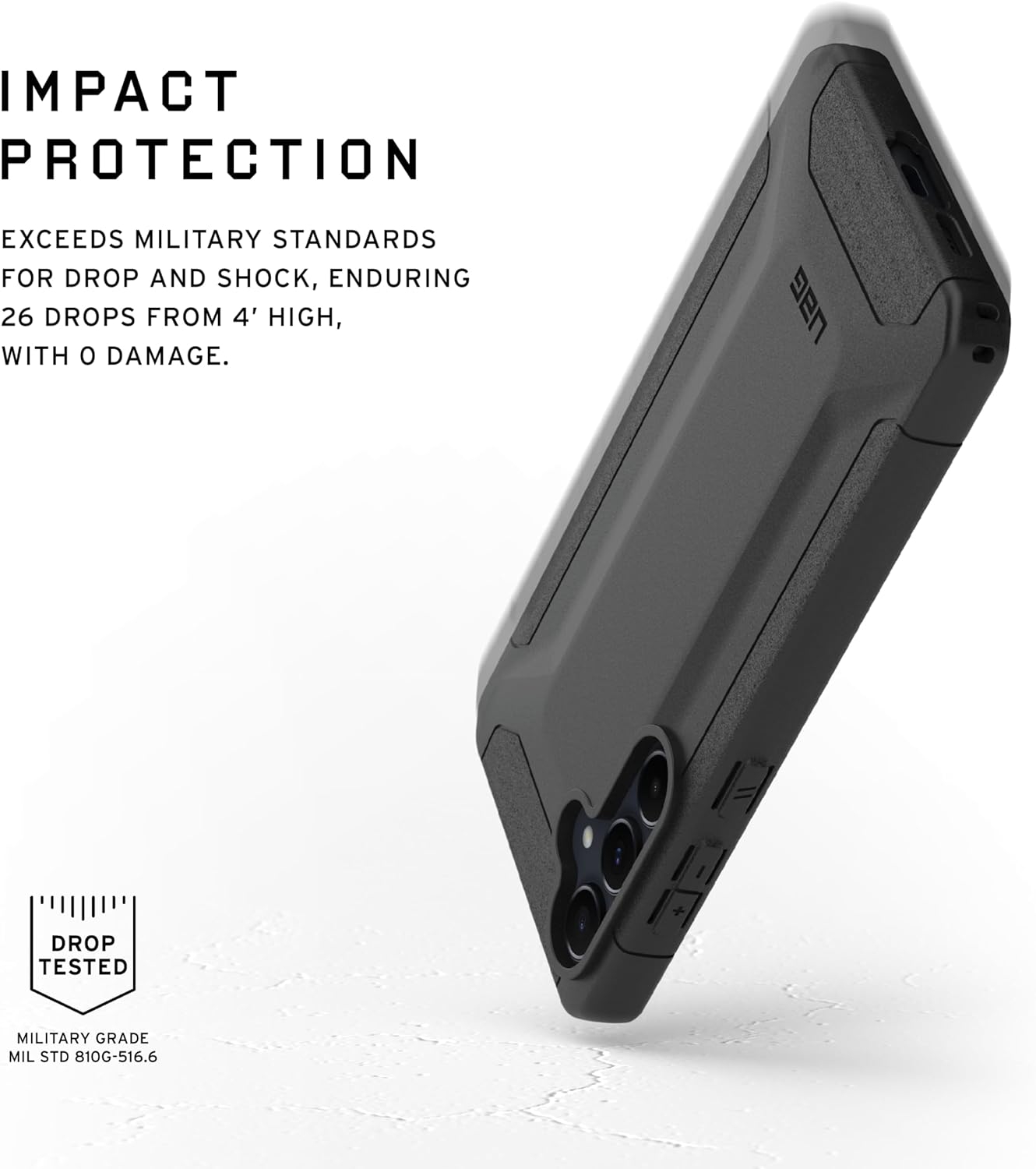 Με τις θήκες UAG ο όγκος της συσκευής αυξάνεται ελάχιστα χάρη στο πολύ λεπτό προφίλ της θήκης. Πληροί τις στρατιωτικές προδιαγραφές MIL STD 810G-516.6, έχοντας περάσει μια σειρά απαιτητικών δοκιμασιών σχετικά με την αντοχή της θήκης, μεταξύ των οποίων και πτώση της συσκευής μαζί με την θήκη από κάθε πιθανή γωνία.