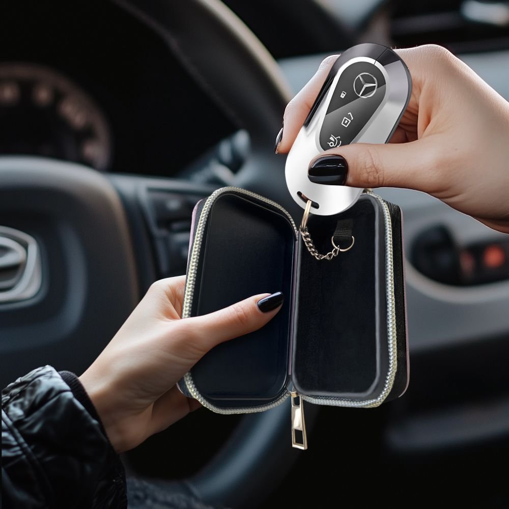 Τα πλήκτρα Keyless Go επιτρέπουν το βολικό, απομακρυσμένο άνοιγμα του αυτοκινήτου, αλλά ταυτόχρονα είναι επιρρεπή σε διάρρηξη και κλοπή σήματος. Μια ειδικά σχεδιασμένη θήκη εμποδίζει τη μετάδοση ραδιοκυμάτων μεταξύ των κλειδιών και του αυτοκινήτου, διασφαλίζοντας έτσι την προστασία από κλοπή από έναν πιθανό κλέφτη.