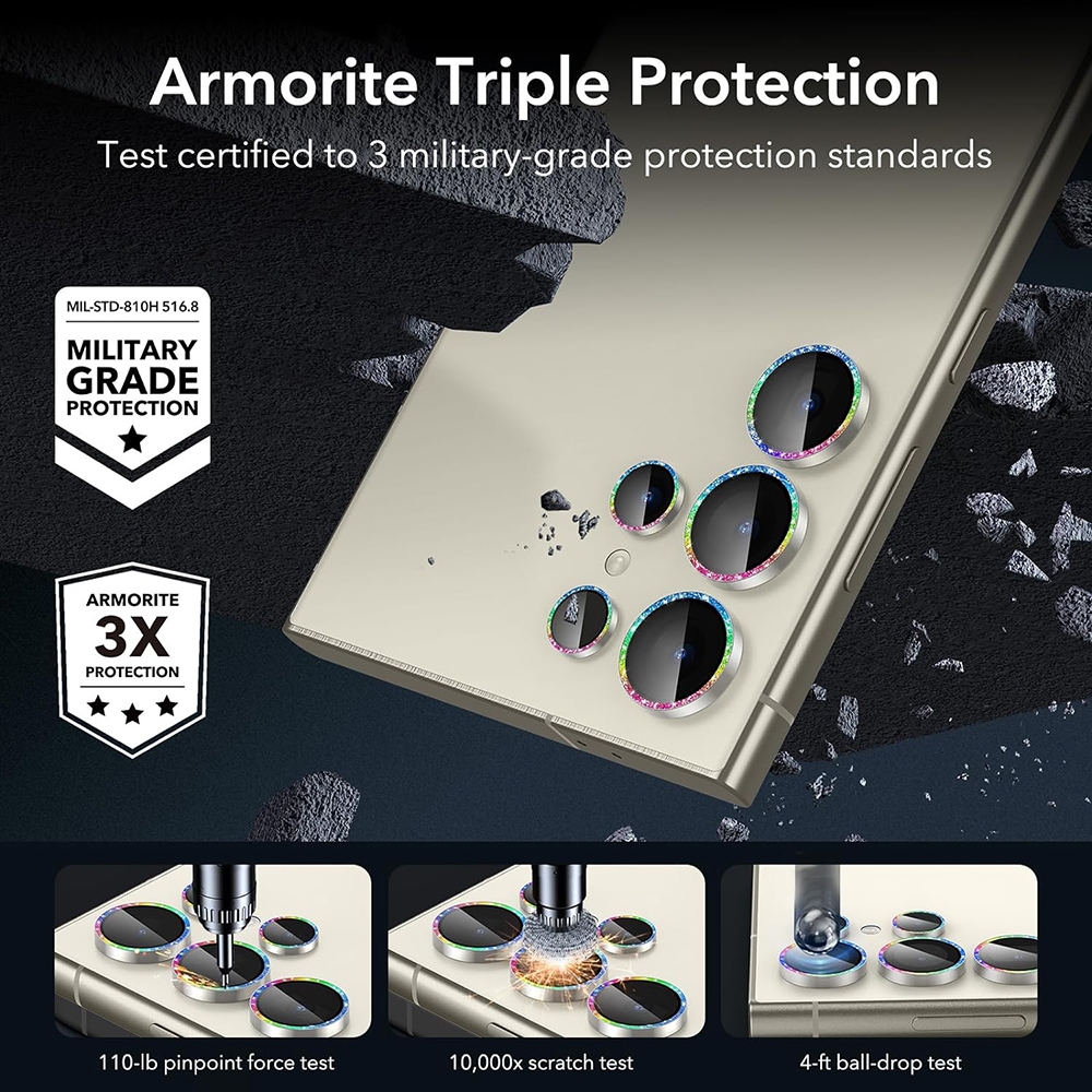 Το αντιχαρακτικό Camera Lens Protectors Armorite της ESR είναι ειδικά σχεδιασμένο για τον φακό της κάμερας του αγαπημένου σας Samsung Galaxy S24 Ultra. Είναι κατασκευασμένο από ενισχυμένο πραγματικό γυαλί 9H και με πολύ λεπτή σύνθεση έτσι ώστε να μην επηρεάζεται το τελικό αποτέλεσμα των φωτογραφιών σας.