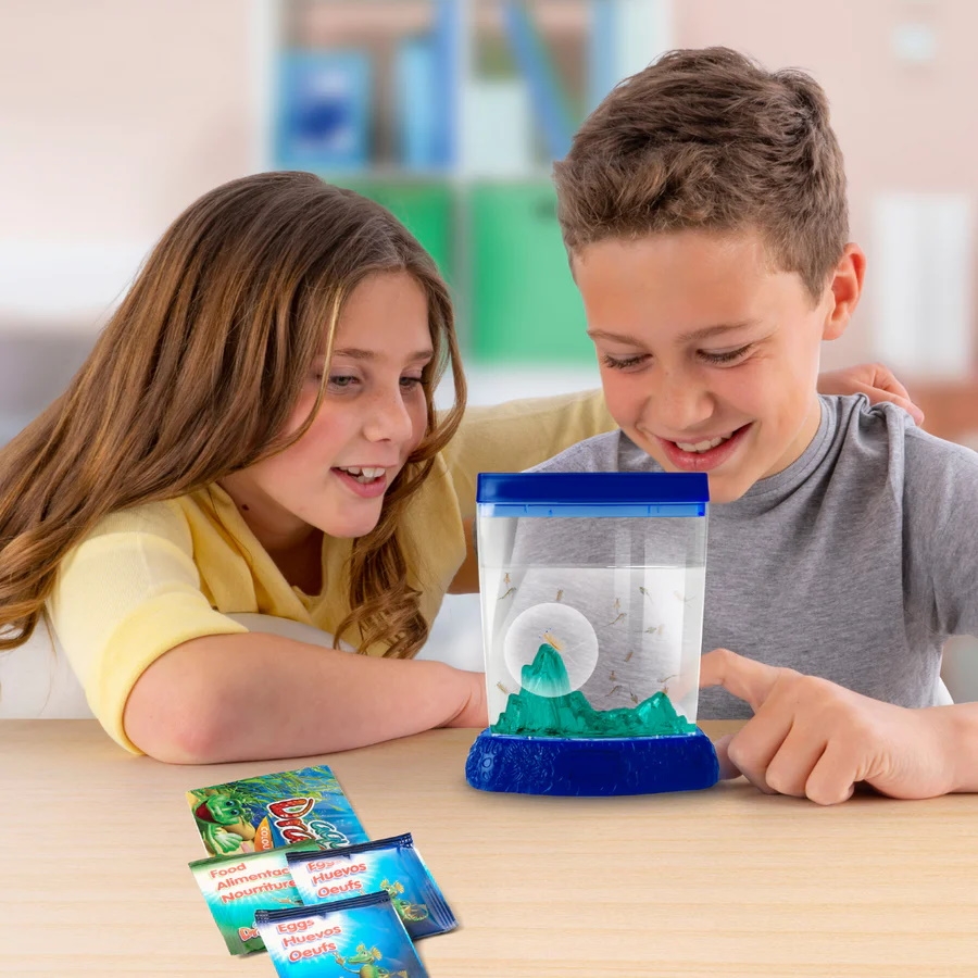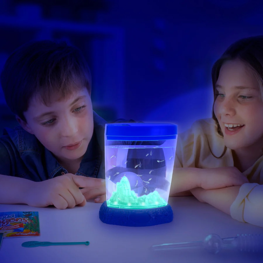 Τα Aqua Dragons είναι χαριτωμένα αστεία ζώα που κολυμπάνε και έχουν τρία μάτια, με μακριά ουρά από την οικογένεια των καρκινοειδών, που τα αυγά τους μπορούν να διατηρηθούν σε αλάτι για μεγάλα χρονικά διαστήματα και να εκκολαφθούν ξανά μόλις τα βάλετε στο νερό! Υπάρχουν στον πλανήτη μας εδώ και εκατομμύρια χρόνια ζώντας στη θάλασσα και σε αλμυρές λίμνες. Χάρη στην εξαιρετική τους αντοχή καταφέρνουν να επιβιώσουν και να αναπαραχθούν σήμερα, όπως ακριβώς έκαναν και πριν από εκατομμύρια χρόνια.