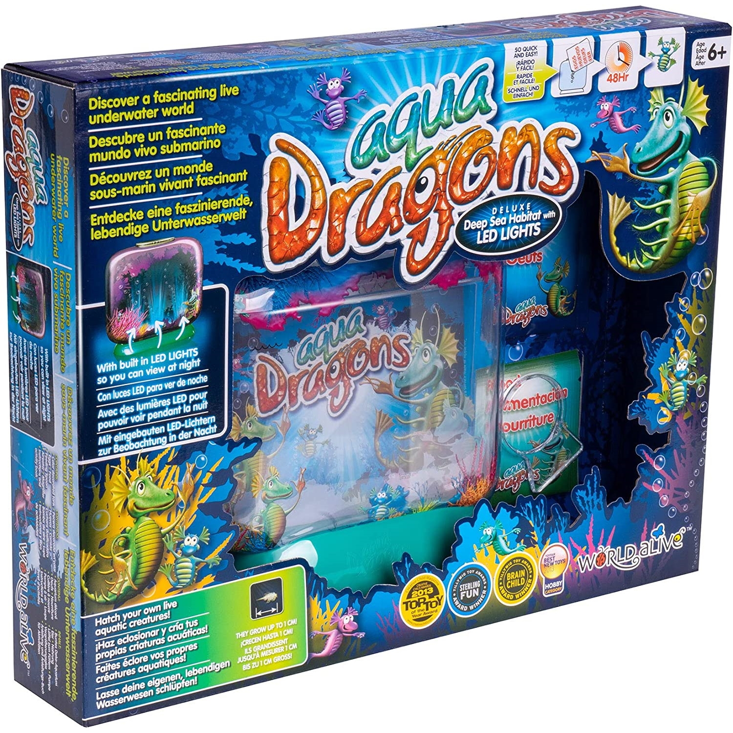Η συσκευασία περιλαμβάνει: 1 x Ενυδρείο με καπάκι και βάση LED, 2 x Μπαταρίες AAA, 1 x Αυγά Aqua Dragons, 1 x Τροφή για Aqua Dragons, 1 x Κουτάλι ταΐσματος, 1 x Μεγεθυντικός Φακός, 1 x Σταγονόμετρο, 1 x Οδηγίες Χρήσης.