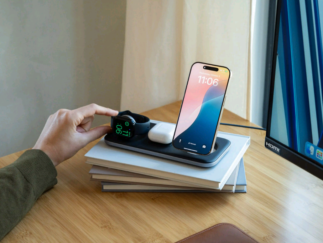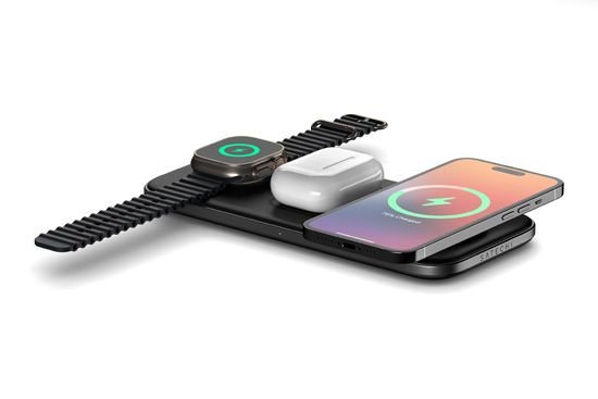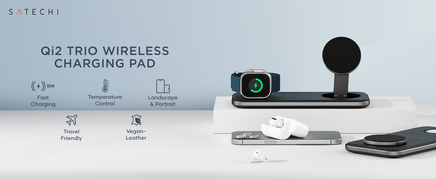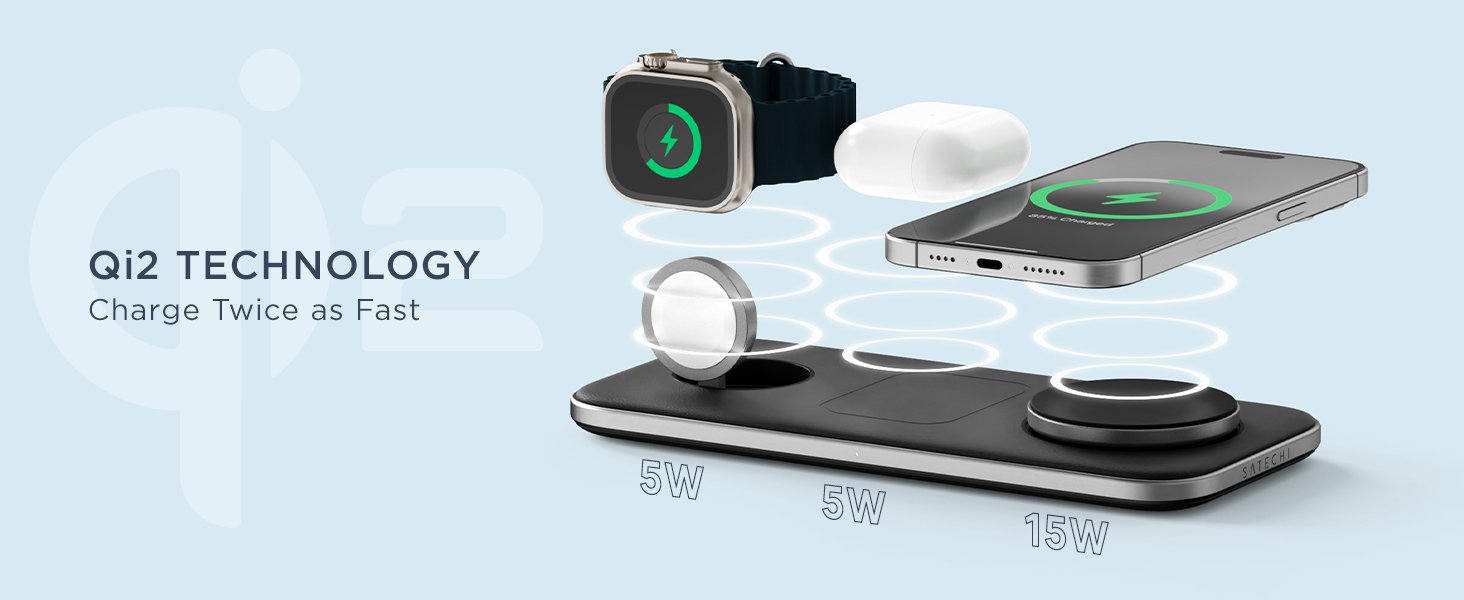 Ο ασύρματος φορτιστής Qi2 Trio της Satechi είναι μία βάση σχεδιασμένη με τεχνολογία Qi2, η οποία παρέχει ισχύ 15W για το smartphone σας, 5W για τα AirPods και 5W για το Apple Watch σας, προσφέροντας εξαιρετική φόρτιση 3 σε 1!