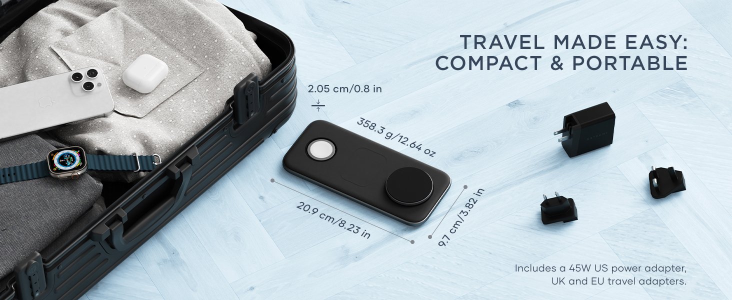 Είναι πιστοποιημένο με Qi2 και πλήρως συμβατό με MagSafe, ώστε να σας εξασφαλίζει μία ασφαλή και γρήγορη φόρτιση. Είναι ιδανικό για ταξίδια, χάρη στο ελαφρύ του βάρος και τους εναλλάξιμους αντάπτορες διαφόρων χωρών.