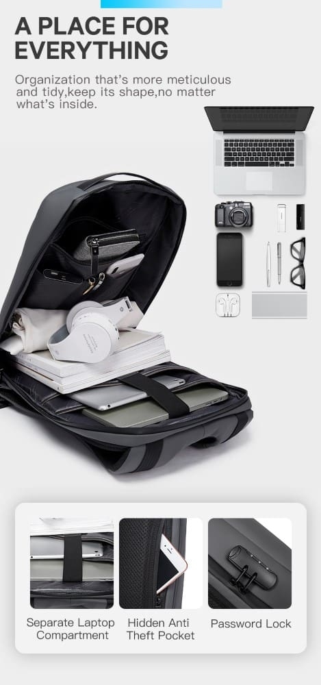 Κατασκευασμένο από αδιάβροχο υλικό, προστατεύει τον φορητό υπολογιστή σας και τα πολύτιμα αντικείμενά σας από τις καιρικές συνθήκες. Η ειδικά σχεδιασμένη θήκη για φορητό υπολογιστή χωράει το MacBook ή ένα laptop έως 15,6 ιντσών ή 14 ιντσών, ενώ οι πολλαπλές εσωτερικές τσέπες οργανώνουν το iPad, τον φορτιστή, τα βιβλία, τα ρούχα και τα προσωπικά σας αντικείμενα με άνεση και ασφάλεια.