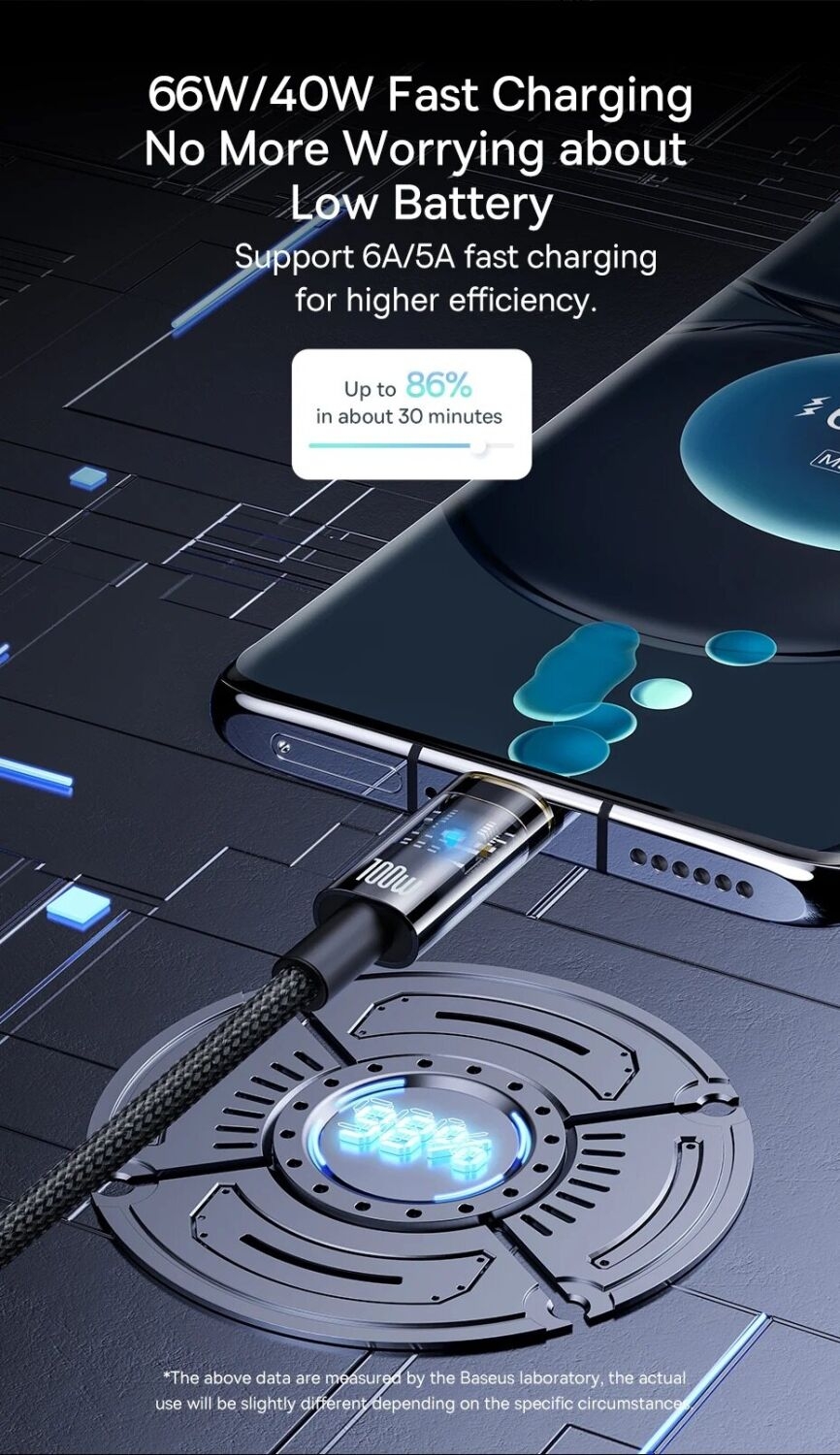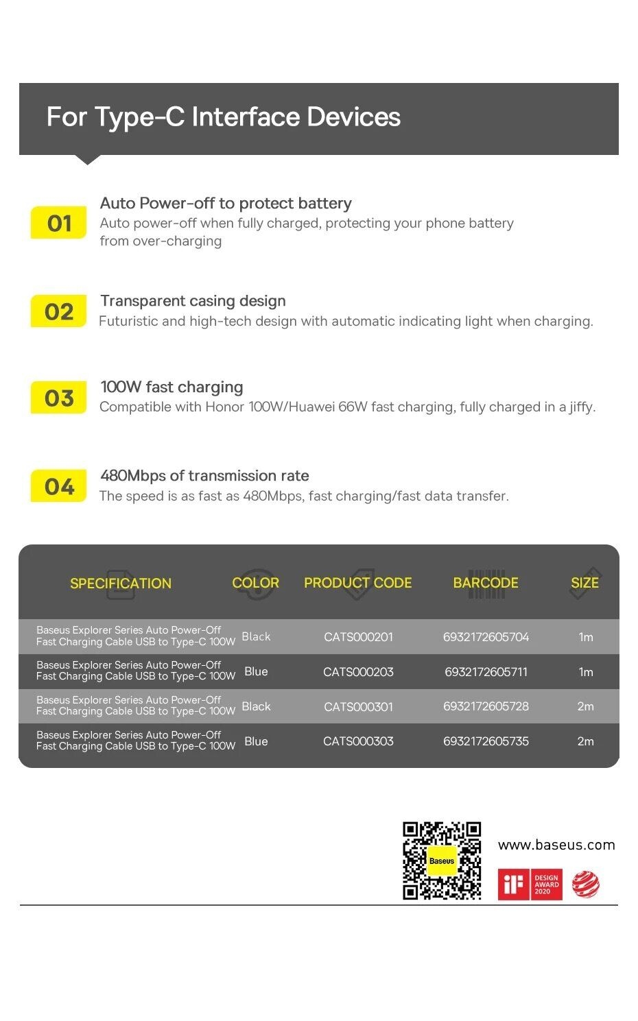 Ανακαλύψτε το απόλυτο καλώδιο φόρτισης και μεταφοράς δεδομένων USB-A σε Type C, Explorer Series της Baseus. Συνδυάζοντας ισχύ 100W με ένταση ρεύματος 6A, αυτό το καλώδιο υποστηρίζει όλα τα σύγχρονα πρότυπα γρήγορης φόρτισης, εξασφαλίζοντας γρήγορη και ασφαλή φόρτιση για τις συσκευές σας, όπου κι αν βρίσκεστε.