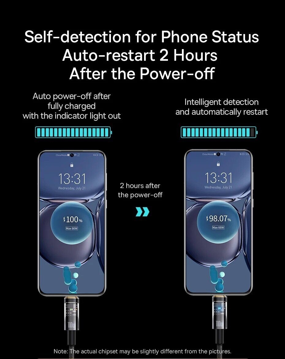 Ο διαφανής σχεδιασμός του βύσματος διαθέτει ενσωματωμένο LED που σας ενημερώνει για την κατάσταση φόρτισης, ενώ η λειτουργία αυτόματης διακοπής ρεύματος προστατεύει τον εξοπλισμό σας από υπερφόρτιση, παρέχοντας ασφάλεια κατά τη διάρκεια της νύχτας ή όταν δεν είστε κοντά.
