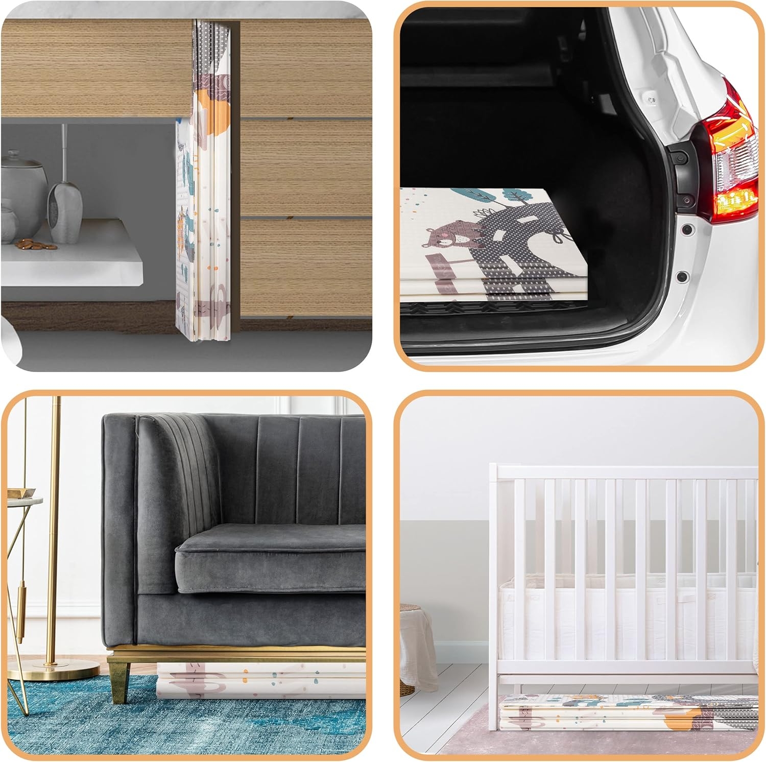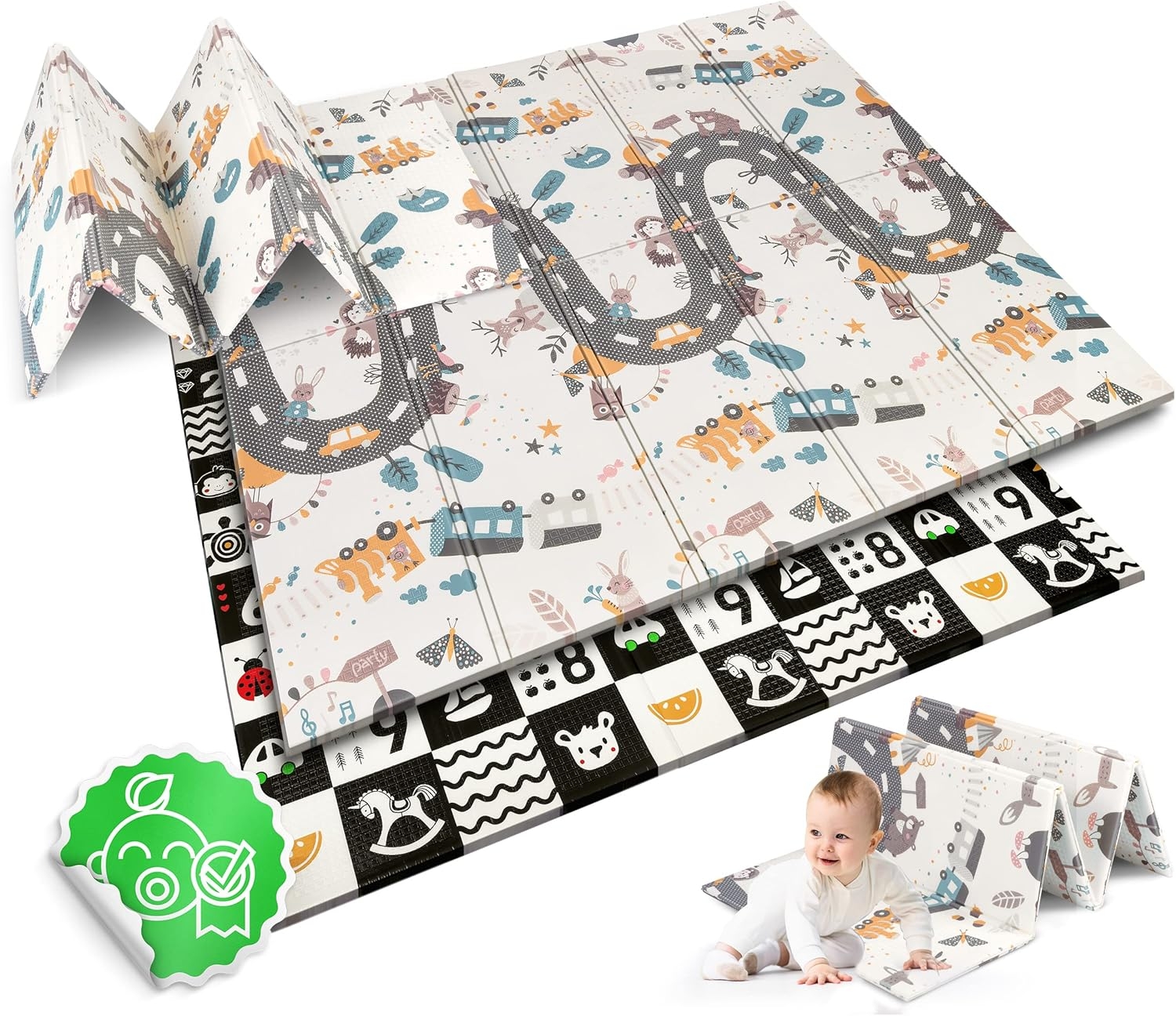 Το χαλάκι επιτρέπει στο μωρό σας να παίζει άνετα, χωρίς να έρχεται σε άμεση επαφή με το έδαφος. Τοποθετήστε το σε οποιοδήποτε δωμάτιο και βάλτε πάνω του όλα τα αγαπημένα παιχνίδια του παιδιού σας. Με προσοχή στη λεπτομέρεια και την ποιότητα, προσφέρει ένα ασφαλές και υγιές περιβάλλον παιχνιδιού για τα παιδιά σας!