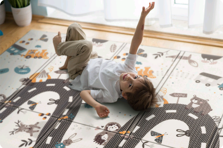 Είναι σχεδιασμένο με θερμομόνωση και φτιαγμένο για να δημιουργεί μια ζεστή και ασφαλή επιφάνεια όπου οι μικροί εξερευνητές μπορούν να ανακαλύπτουν τον κόσμο τους. Προστατεύει από το κρύο έδαφος, προσφέροντας μια άνετη βάση για παιχνίδι, ενώ παράλληλα προάγει την ανάπτυξη και την ευχάριστη εξερεύνηση. Επιπλέον, καθαρίζεται πολύ εύκολα, εσείς απλώς σκουπίστε με ένα υγρό πανί.
