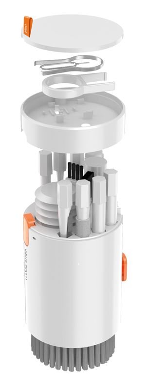Αυτό το πολυλειτουργικό σετ, είναι σχεδιασμένο ειδικά για smartphones, tablets, laptops, φωτογραφικές μηχανές, πληκτρολόγια, ακουστικά και κάθε ηλεκτρονική συσκευή, αξεσουάρ και gadget. Περιλαμβάνει 20 εργαλεία που εξασφαλίζουν έναν βαθύ καθαρισμό ακόμα και στα πιο δυσπρόσιτα σημεία, αφαιρώντας σκόνη, βρομιά και δακτυλικά αποτυπώματα.