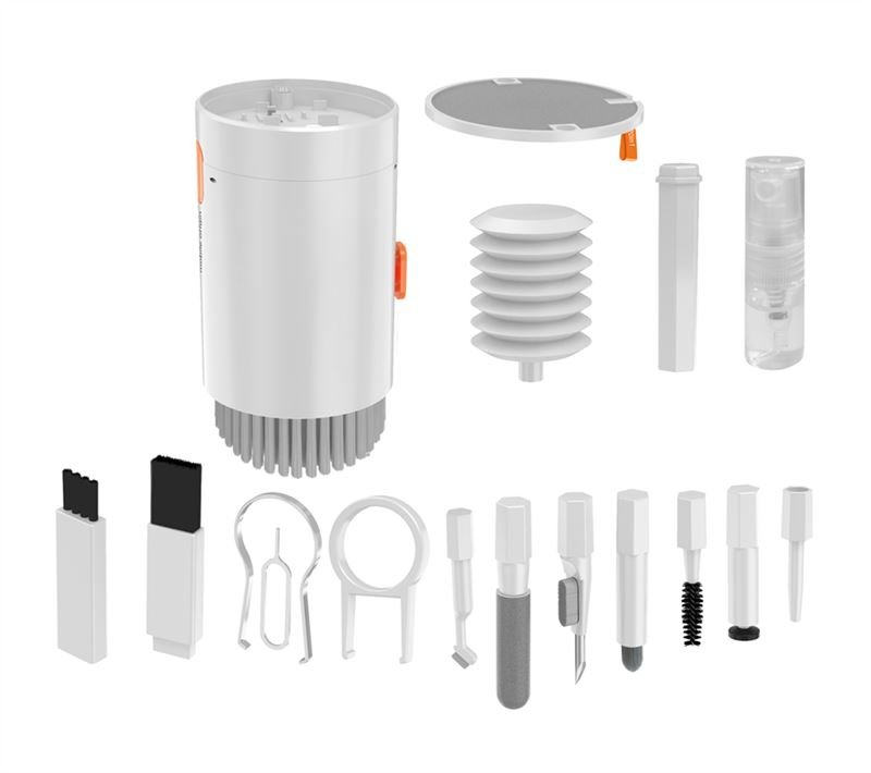 Το σετ περιλαμβάνει ένα πλήρες φάσμα εργαλείων καθαρισμού, όπως βούρτσες διαφορετικών μεγεθών και υφής για τον καθαρισμό οθονών, ακουστικών και πληκτρολογίων. Επίσης, περιλαμβάνει φυσητήρα αέρα & προέκταση φυσητήρα για την απομάκρυνση της σκόνης, μαλακές άκρες αφρού και λεπτές μύτες για την αφαίρεση της βρομιάς από σχισμές και γωνίες.