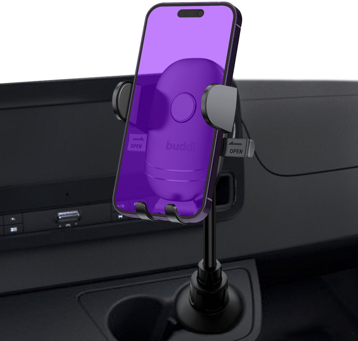 Η βάση στήριξης κινητού Phone Car Mount Cup Holder της Buddi, προσαρμόζεται άψογα στην ποτηροθήκη του αυτοκινήτου σας, προσφέροντάς σας μια πληθώρα προσαρμοσμένων γωνιών προβολής καθώς οδηγείτε και επιτρέποντάς σας συνεχή πρόσβαση στην οθόνη του κινητού σας. Επίσης, προσφέρει εύκολη και άνετη χρήση, καθώς ένα πάτημα αρκεί για να κλείσουν ή να ανοίξουν οι λαβές που κρατούν με ασφάλεια το κινητό σας στη βάση.