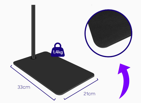 Σας εξασφαλίζει σταθερότητα στην επίπεδη επιφάνεια την οποία βρίσκεται και δεν χρειάζεται να ανησυχείτε μην πέσει. Επιπλέον, οι σφιγκτήρες διασφαλίζουν ότι το smartphone, το tablet ή το iPad σας παραμένουν σταθερά στη βάση, ακόμα και όταν μετακινείτε την βάση, χάρη στα μαξιλαράκια σιλικόνης που διαθέτουν.