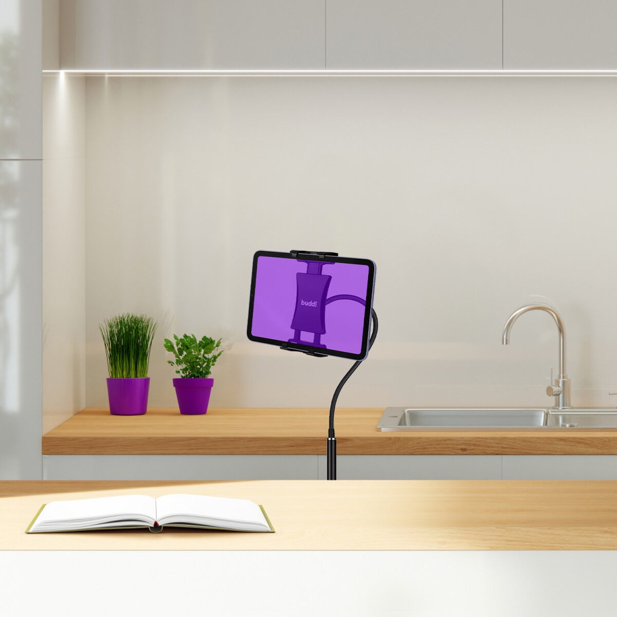 Μπορείτε επίσης να τοποθετήσετε εύκολα τη συσκευή σας στη βάση ακόμα και με την θήκη στο τηλέφωνο, το tablet ή το iPad σας. Με λίγα λόγια, η βάση είναι κατάλληλη για σχεδόν κάθε τηλέφωνο ή tablet 12 - 23 cm της αγοράς. Είναι εξαιρετικά βολική για να παρακολουθήσετε ένα βίντεο ή μια σειρά, ακόμα και τις αγαπημένες συνταγές, καθώς δεν χρειάζεται να κρατάτε με τα χέρια σας το κινητό ή tablet σας.