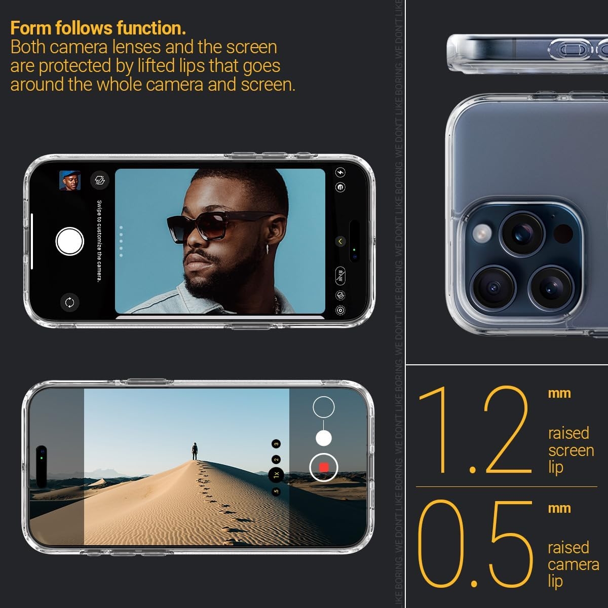 Το εξαιρετικά διάφανο, εύκαμπτο TPU και το σκληρό PC με την τεχνολογία κατά του κιτρινίσματος, προσφέρει μια διάφανη επίστρωση που αναδεικνύει το εντυπωσιακό design του iPhone 15 Pro, ενώ παράλληλα το προστατεύει από καθημερινές φθορές και κραδασμούς. Διαθέτει μαγνητικό δακτύλιο, συμβατό με αξεσουάρ MagSafe, όπως τον φορτιστή, βάσεις γραφείου, αυτοκινήτου και finger holder.