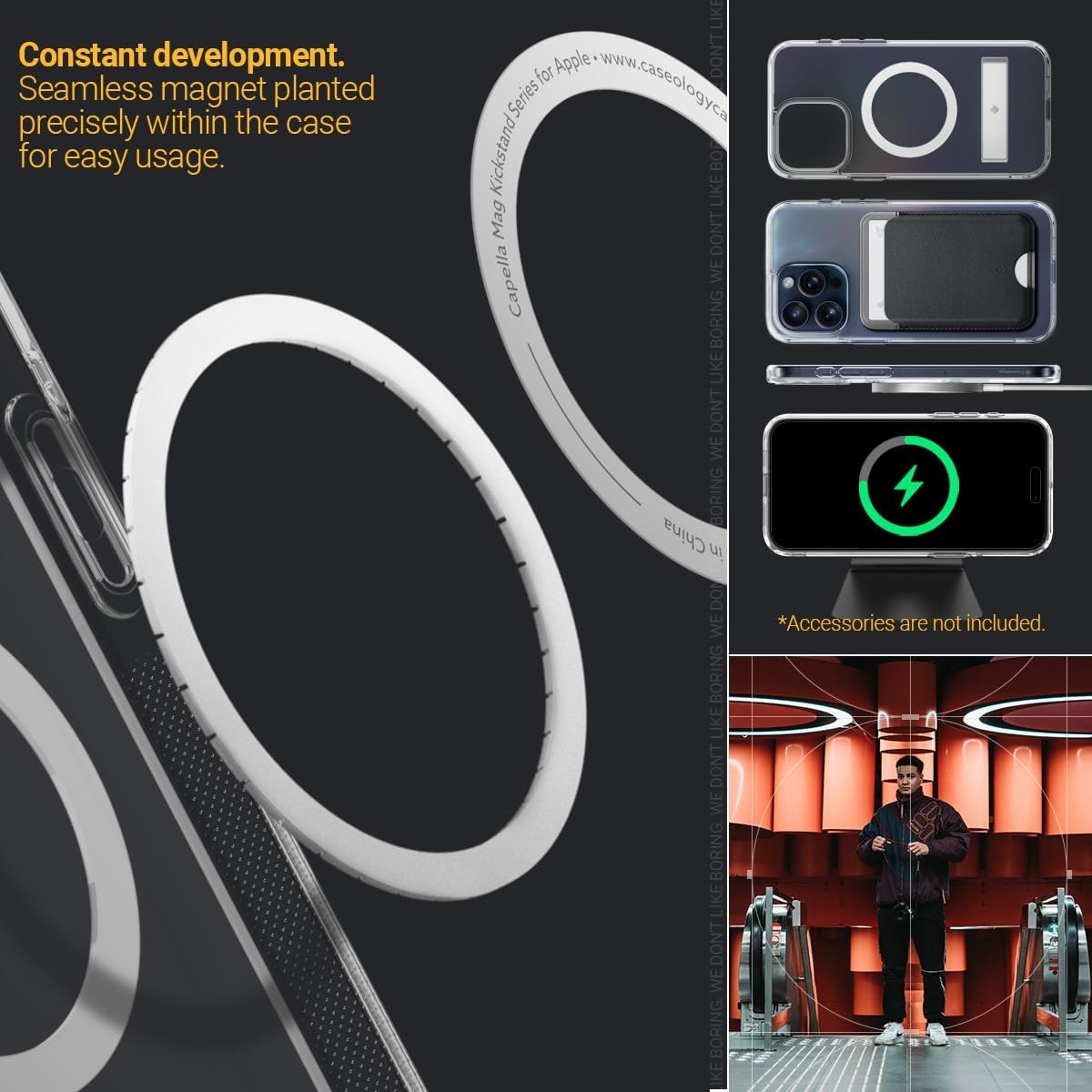 Γνωρίστε την ολοκαίνουργια MagSafe θήκη Capella Mag Kickstand της Caseology, η οποία είναι ειδικά σχεδιασμένη για το iPhone 15 Pro. Αυτή η θήκη συνδυάζει τη λειτουργικότητα με το στυλ για να προσφέρει την απόλυτη προστασία στη συσκευή σας, χωρίς να χάνει την εκλεπτυσμένη εμφάνισή της.