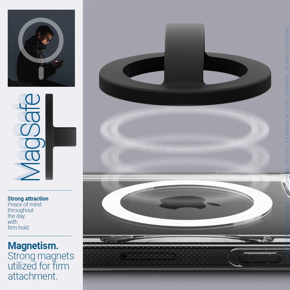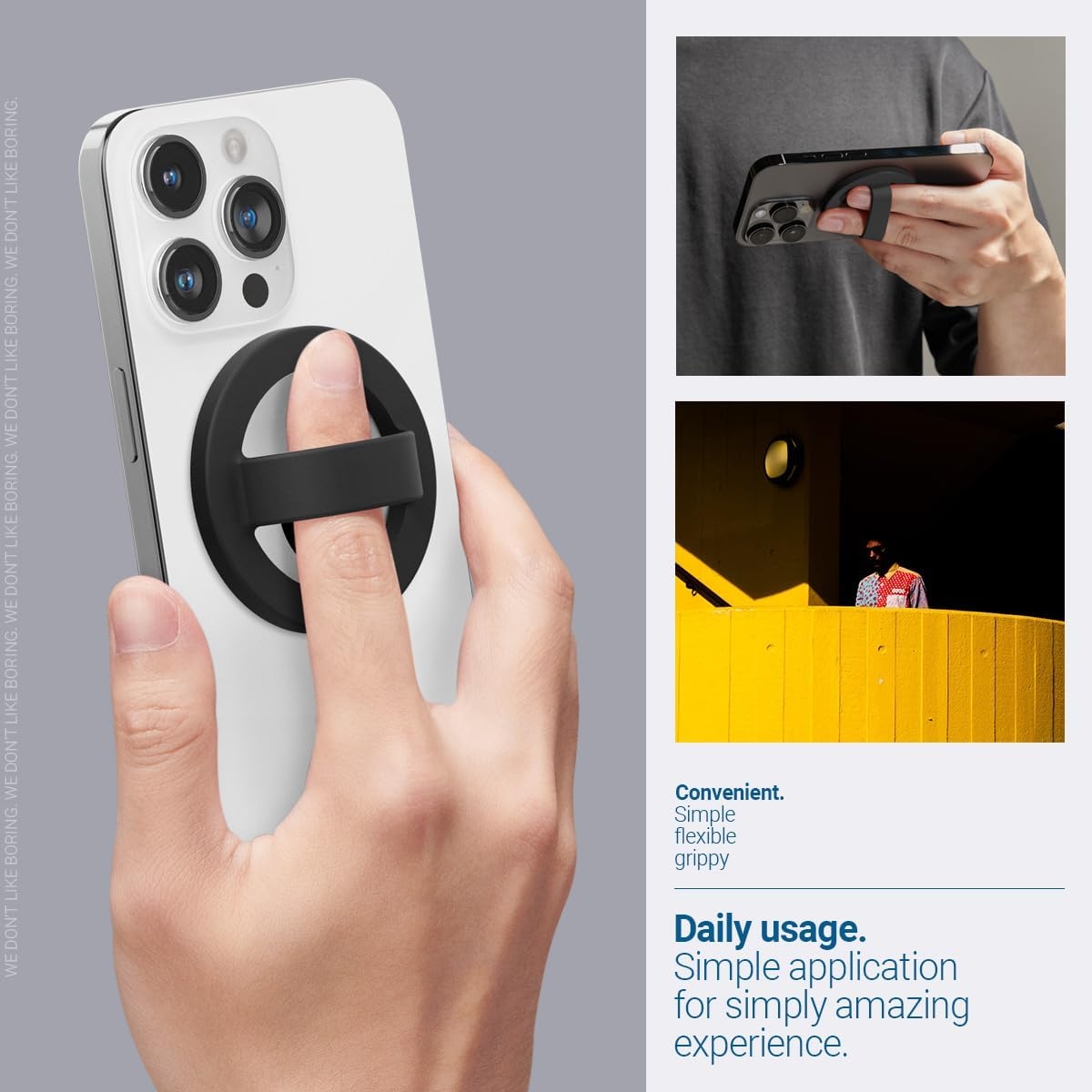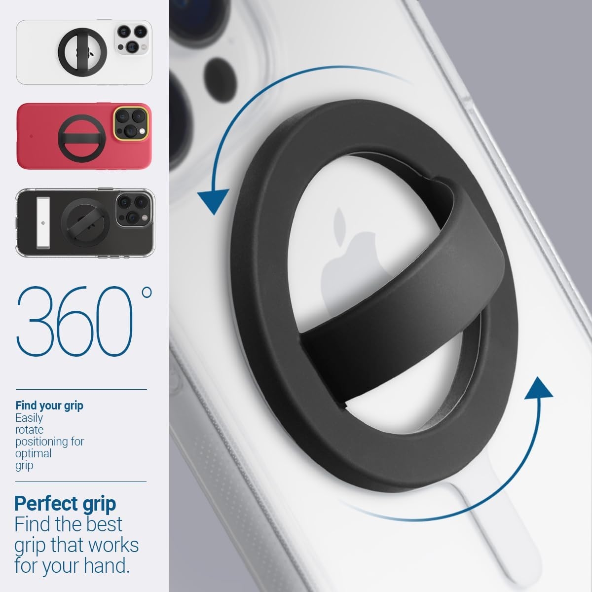 Το holder σιλικόνης είναι συμβατό με συσκευές MagSafe, χρησιμοποιώντας ισχυρούς μαγνήτες N52 για ασφαλή και σταθερή χρήση. Η εύκαμπτη και μαλακή λαβή με βρόχο σιλικόνης προσφέρει άνετη αίσθηση ακόμη και κατά τη μακροχρόνια χρήση, ενώ η δυνατότητα περιστροφής 360 μοιρών επιτρέπει ευέλικτη χρήση σε διάφορες περιστάσεις.