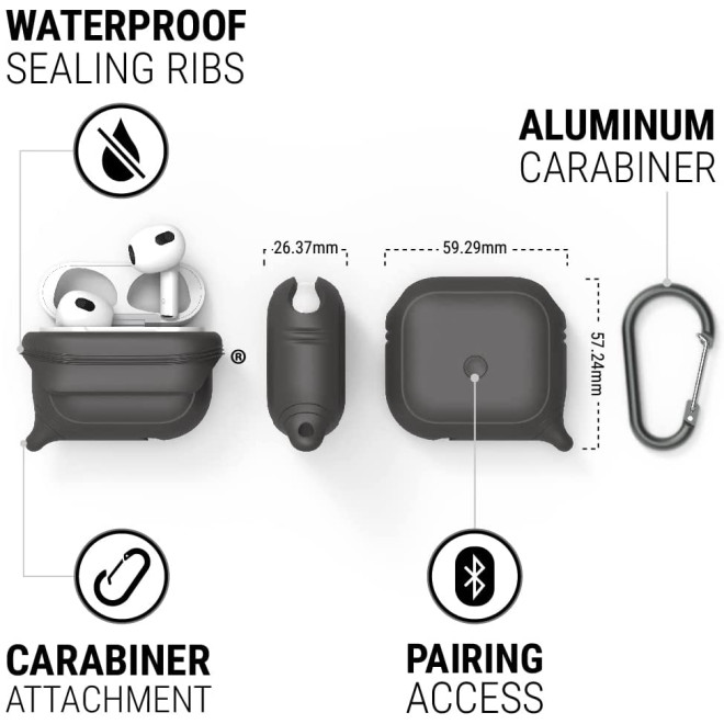Είναι κατασκευασμένη από εύκαμπτη σιλικόνη, η οποίο προσαρμόζεται τέλεια στα AirPods 3rd Gen σας και τα προστατεύει απόλυτα από γρατσουνιές, πτώσεις, προσκρούσεις, σκόνη, βροχή ή το χιόνι! Έτσι μπορείτε να παίρνετε τα ακουστικά σας παντού μαζί σας χωρίς καμία ανησυχία! Επιπλέον, διαθέτει ένα καινοτόμο σύστημα ανοίγματος, χάρη στο οποίο η Catalyst έχει πάρει πολλαπλά βραβεία σχεδιασμού.