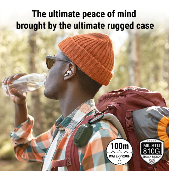 Η θήκη Total Protection σας διασφαλίζει αδιαβροχοποίηση IP68 σε έως και 100 μέτρα βάθος. Επιπλέον, διαθέτει πιστοποίηση MIL-STD-810G σύμφωνα με τα στρατιωτικά πρότυπα, αυτό σημαίνει ότι είναι ανθεκτική σε πτώσεις σε έως και 3 μέτρα ύψος. Με χαρακτηριστική ένδειξη LED στο μπροστινό μέρος αλλά και συμβατότητα με λειτουργία ασύρματης φόρτισης, ώστε να μπορείτε να έχετε τα αγαπημένα σας Airpods μαζί σας παντού.