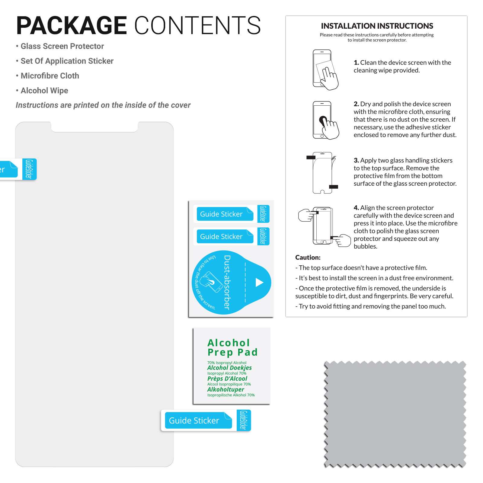 Η συσκευασία περιέχει 1 Screen protector από γυαλί, 1 πανάκι υγρό με ειδικό αλκοόλ καθαρισμού, 1 πανάκι με μικροϊνες και 1 πλαστική κάρτα εφαρμογής