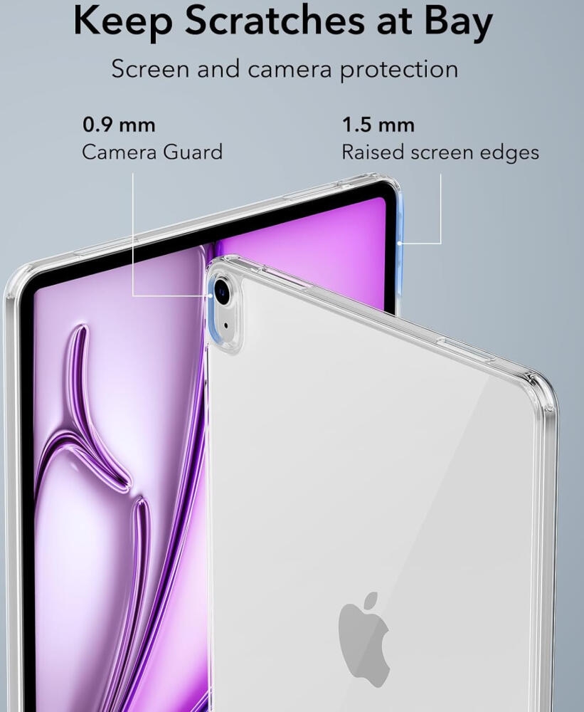 Αποτελείται από ένα σκληρό διαφανές ακρυλικό στρώμα, το οποίο δεν κιτρινίζει με το πέρασμα του χρόνου, τυλίγεται γύρω από τις άκρες και το πίσω μέρος του iPad Air 13" 2025 / 2024 και από ένα ανθεκτικό μαλακό πλαίσιο περιμετρικά της συσκευής, κατασκευασμένο από θερμοπλαστικό TPU, το οποίο προστατεύει επιπλέον τη συσκευή από πτώσεις.