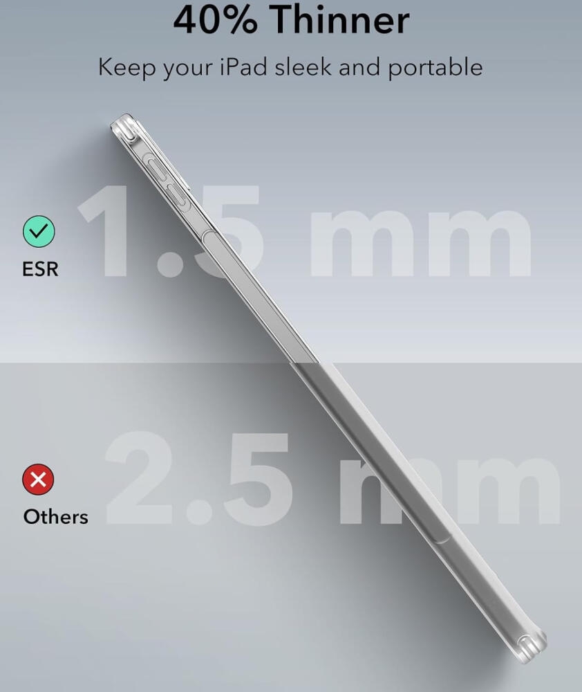 Λόγω των ιδιοτήτων του, το ακρυλικό στρώμα παρέχει καλή προστασία από πιθανά ατυχήματα στην καθημερινή χρήση, επίσης η θήκη ταιριάζει απόλυτα στο iPad Air 13" 2025 / 2024 και δεν περιορίζει τις δυνατότητές του. Είναι εξαιρετικά ελαφριά και λεπτή με πάχος μόλις 1.5mm.