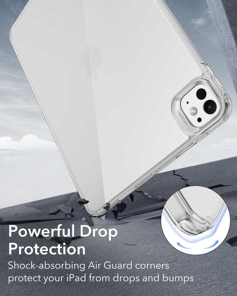 Αποτελείται από ένα σκληρό διαφανές ακρυλικό στρώμα, το οποίο δεν κιτρινίζει με το πέρασμα του χρόνου, τυλίγεται γύρω από τις άκρες και το πίσω μέρος του iPad Pro 11" 2024 και από ένα ανθεκτικό μαλακό πλαίσιο περιμετρικά της συσκευής, κατασκευασμένο από θερμοπλαστικό TPU, το οποίο προστατεύει επιπλέον τη συσκευή από πτώσεις.