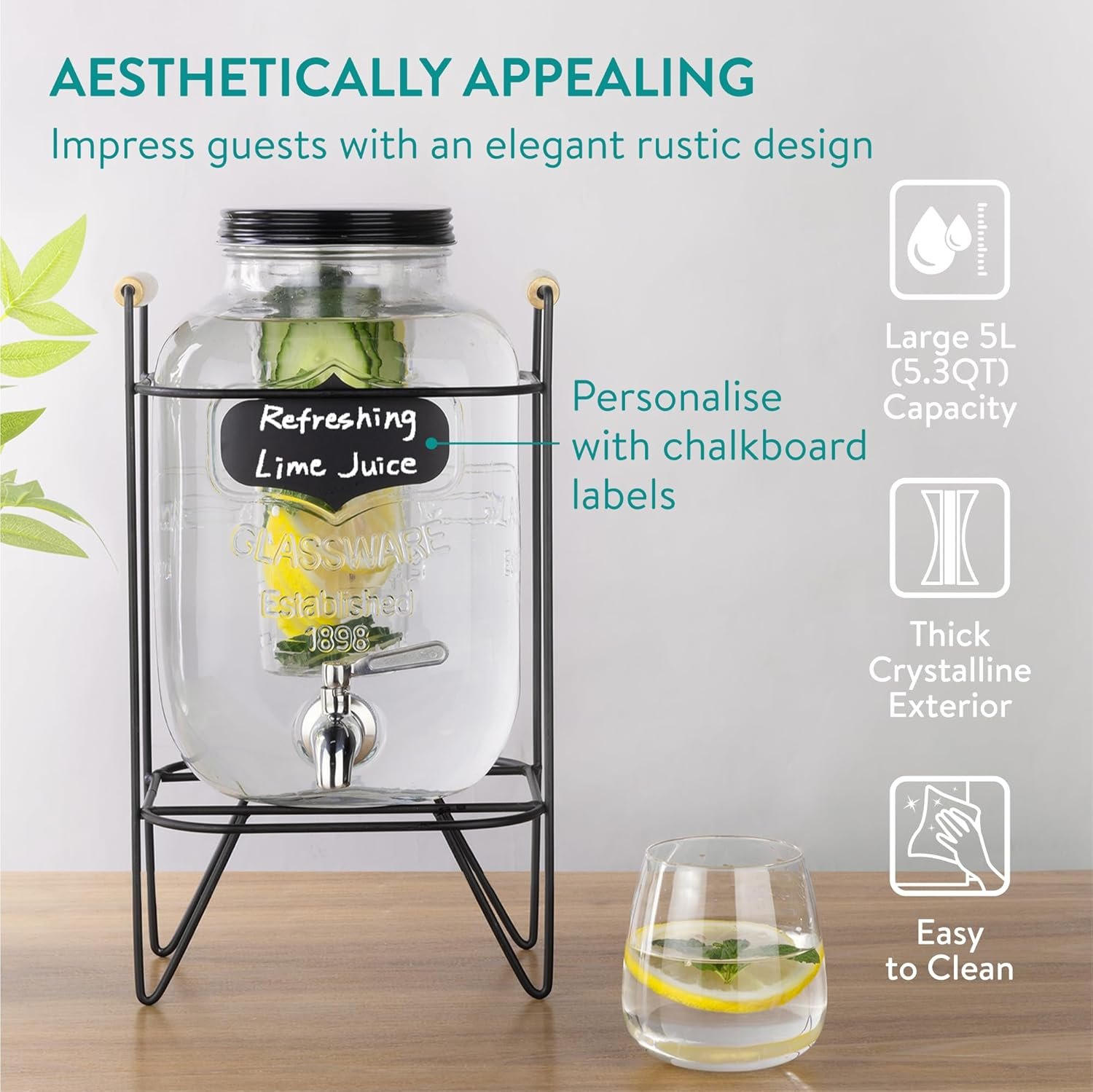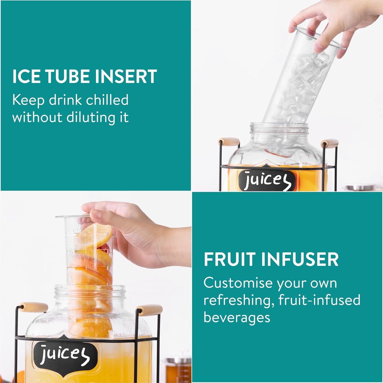 Είναι σχεδιασμένος με ένα μεγάλο γυάλινο δοχείο χωρητικότητας 5 λίτρων, επιτρέποντάς σας να προσφέρετε τα αγαπημένα σας ποτά. Με στιβαρή κατασκευή από παχύ, ανθεκτικό γυαλί σόδα-λάιμ, σας προσφέρει διαφάνεια και ανθεκτικότητα. Προσθέστε στα ποτά σας γεύση, χρησιμοποιώντας το ένθετο έγχυσης φρούτων και αφήστε το ρόφημα να απορροφήσει τα αρώματα.