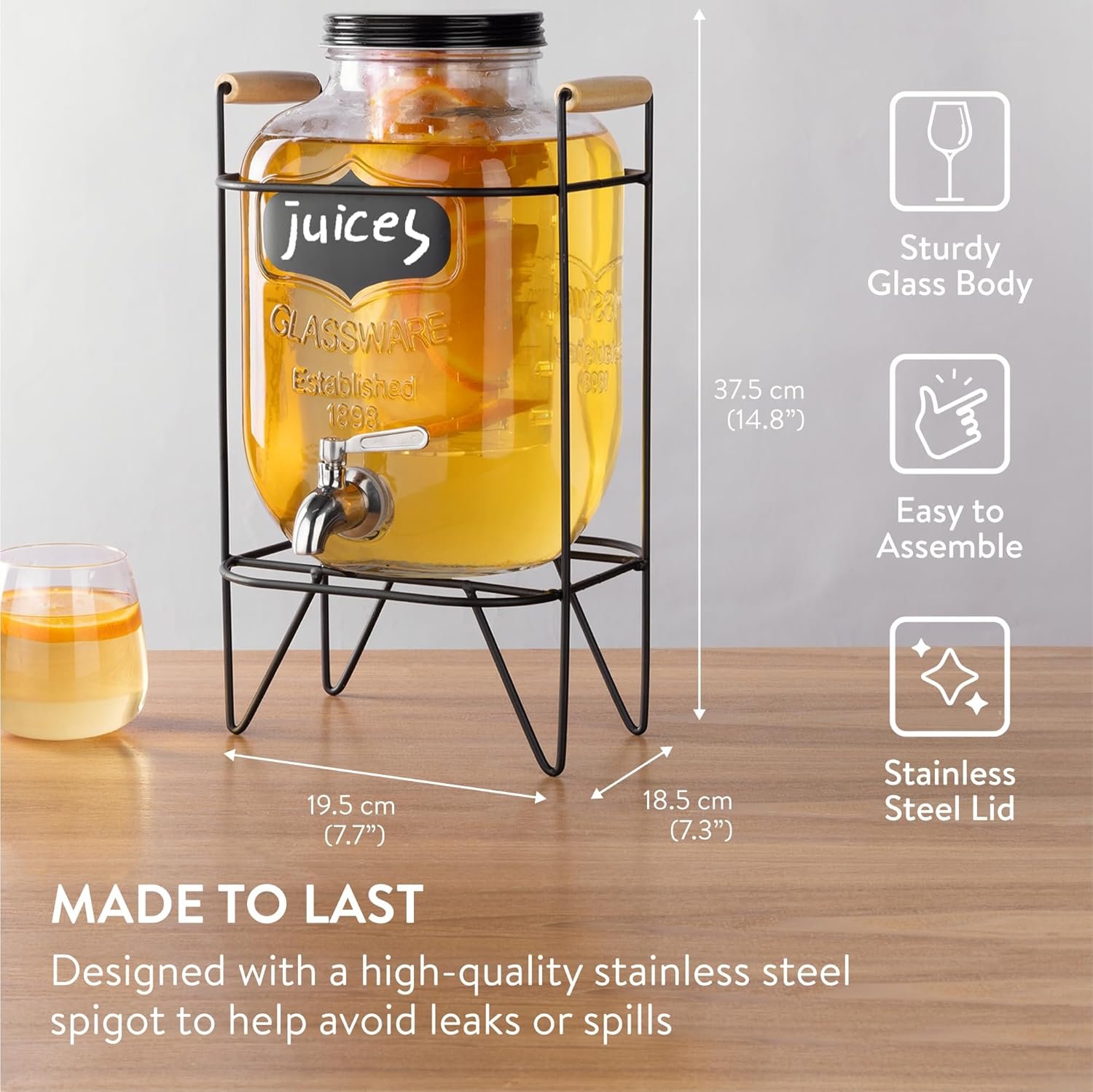 Αποκτήστε σήμερα τον γυάλινο διανεμητή ποτών της Navaris, ένα κομψό και εξαιρετικά πρακτικό Gadget Κουζίνας ιδανικό για κάθε περίσταση! Ιδανικό για να σερβίρετε δροσερά αναψυκτικά, κοκτέιλ, λεμονάδα ή νερό σε κάθε σας συγκέντρωση!
