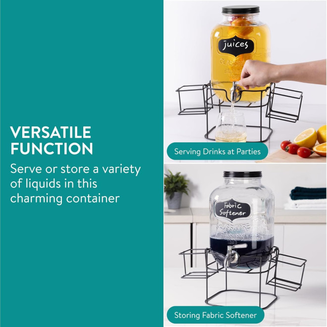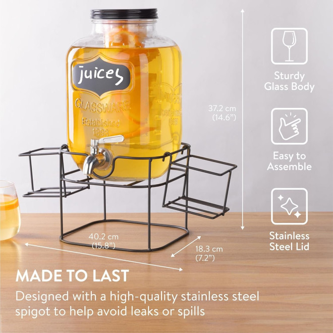 Αποκτήστε σήμερα τον γυάλινο διανεμητή ποτών της Navaris, ένα κομψό και εξαιρετικά πρακτικό Gadget Κουζίνας ιδανικό για κάθε περίσταση! Ιδανικό για να σερβίρετε δροσερά αναψυκτικά, κοκτέιλ, λεμονάδα ή νερό σε κάθε σας συγκέντρωση!