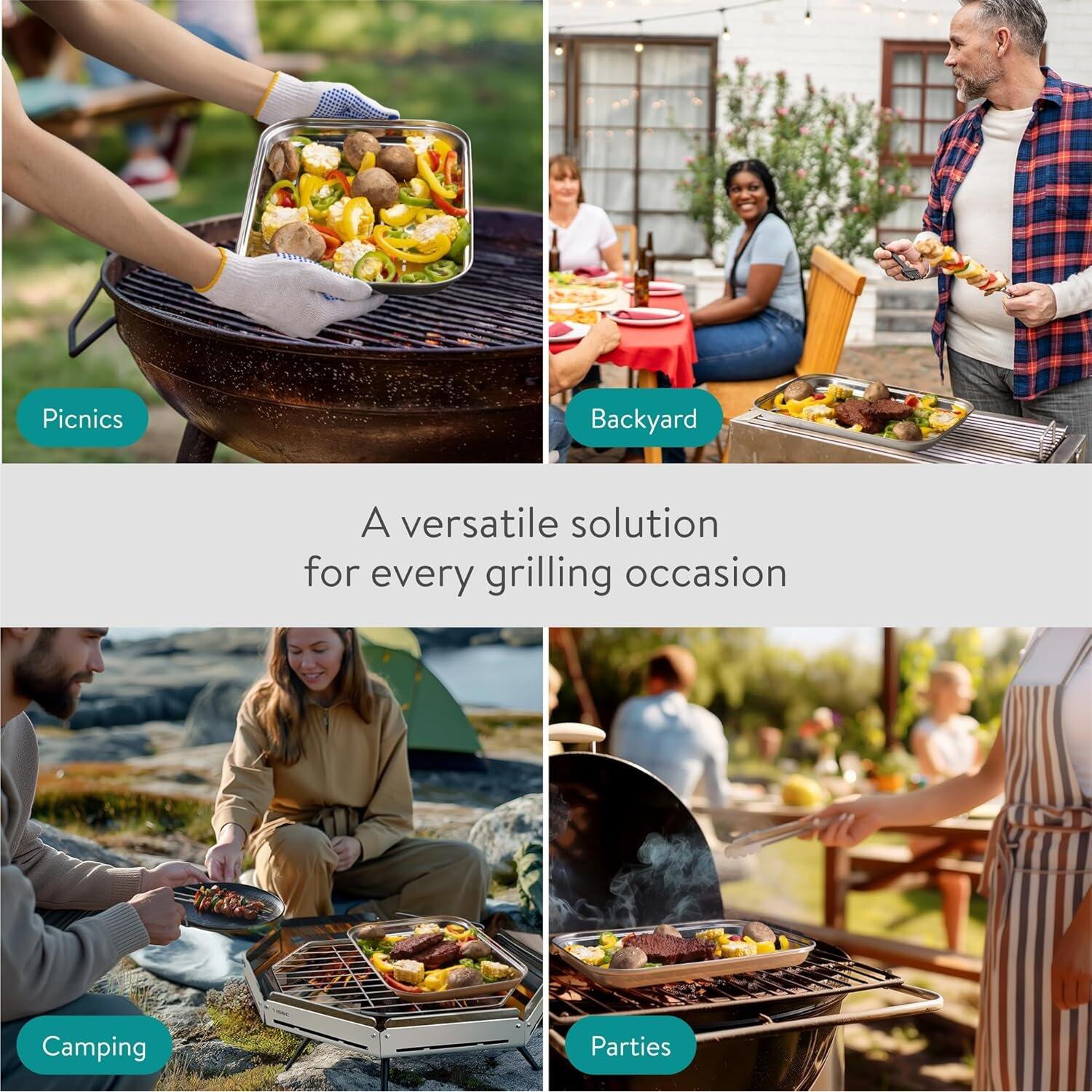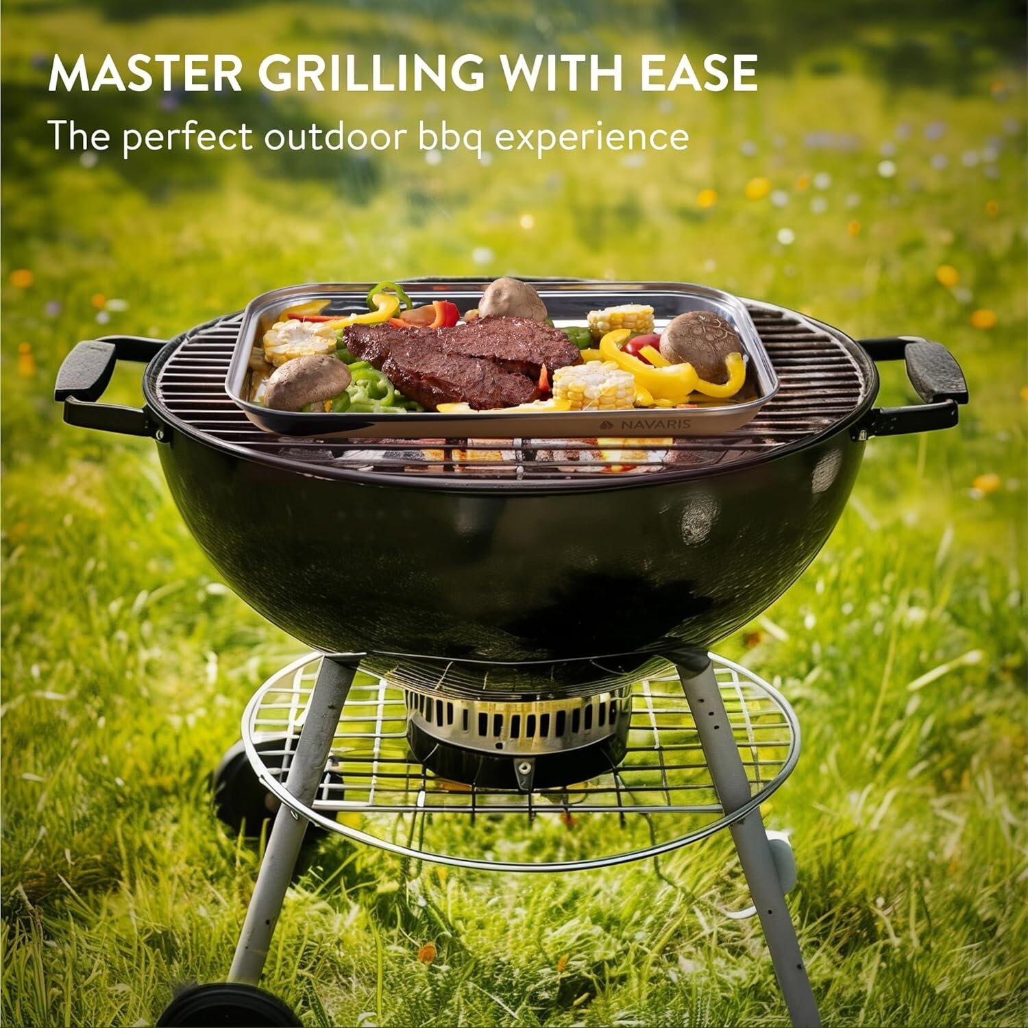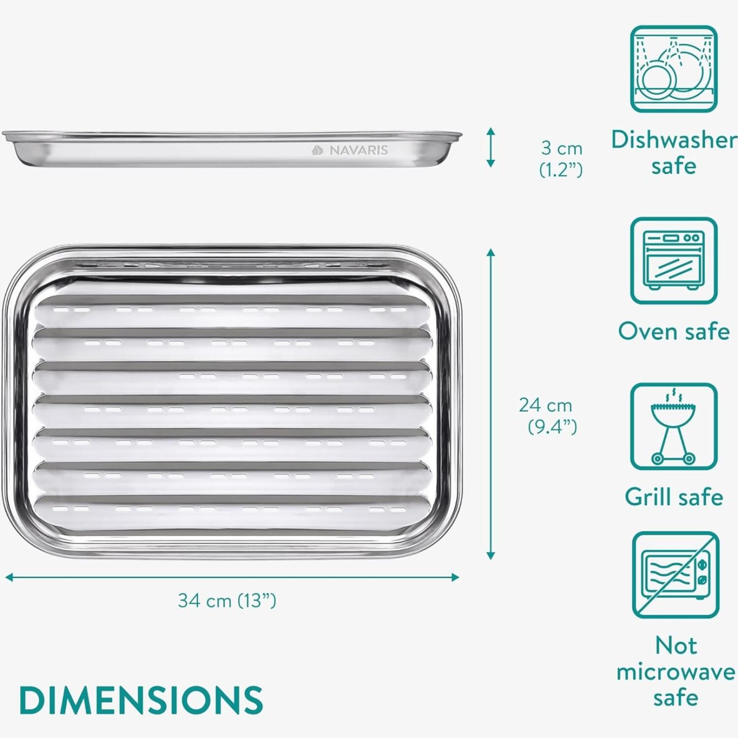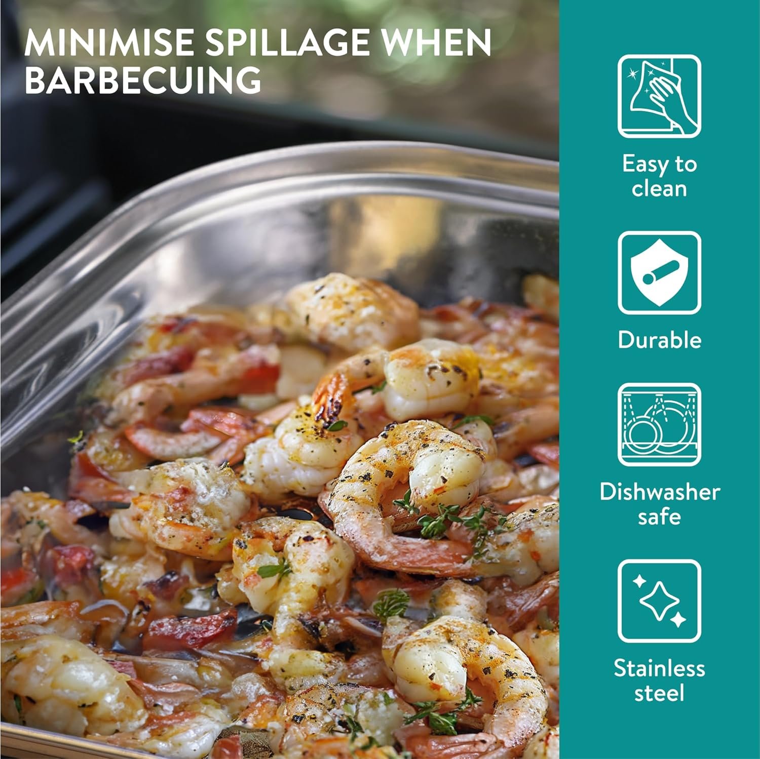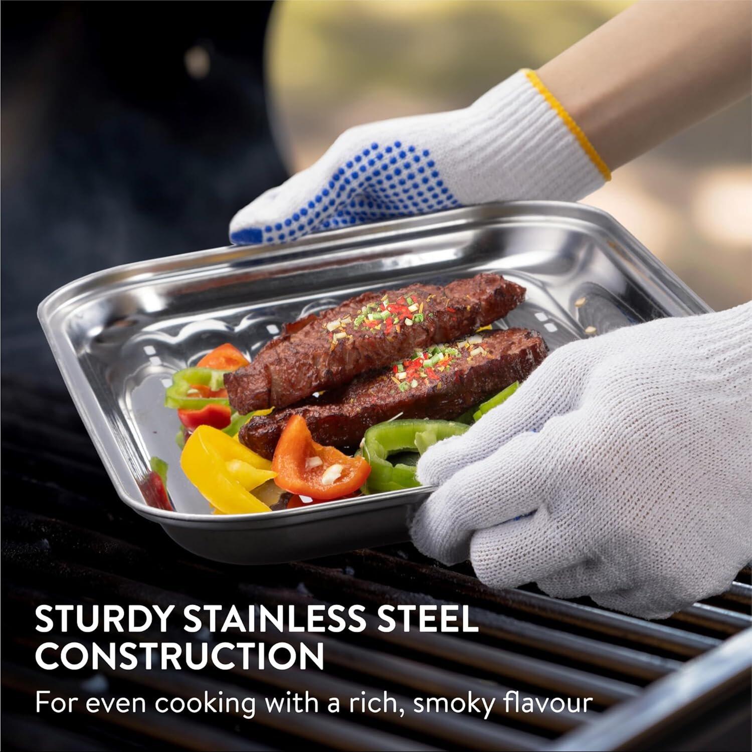 Οι δίσκοι ψησίματος για BBQ της Navaris είναι ένα gadget κουζίνας από ανοξείδωτο ατσάλι, που θα σας βοηθήσει να αναβαθμίσετε το ψήσιμο στο μπάρμπεκιου και στο φούρνο. Διαθέτουν διαστάσεις 34 x 24 cm, είναι εξαιρετικά ανθεκτικά και προσφέρουν τέλεια κατανομή θερμότητας, κάθε φορά που ψήνετε.