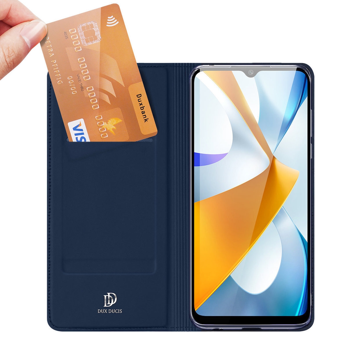 Η νέα θήκη - πορτοφόλι από τη Duxducis είναι ειδικά σχεδιασμένη για το Xiaomi Poco C40. Το κινητό σας εφαρμόζει άψογα στη θήκη σιλικόνης που περιέχεται μέσα στην εξωτερική θήκη, εξασφαλίζοντας με κομψό και εκλεπτυσμένο τρόπο την προστασία της συσκευής σας.