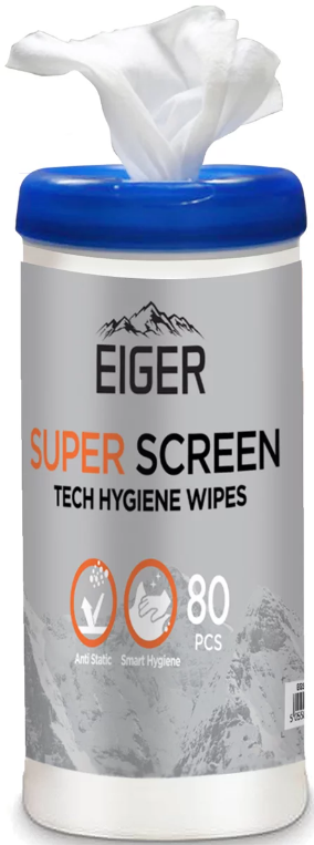Τα Super Screen Tech Hygiene Wipes της Eiger, είναι ειδικά σχεδιασμένα για να καθαρίζουν, να γυαλίζουν και να προστατεύουν οποιαδήποτε οθόνη smartphone και ηλεκτρονική συσκευή και δεν περιλαμβάνει τίποτα που θα καταστρέψει, θα χαράξει ή θα βλάψει οποιαδήποτε από τις οθόνες ή τις συσκευές σας.