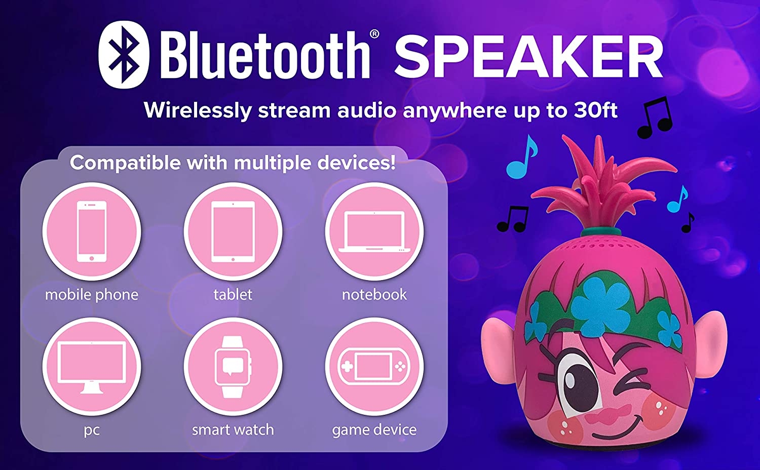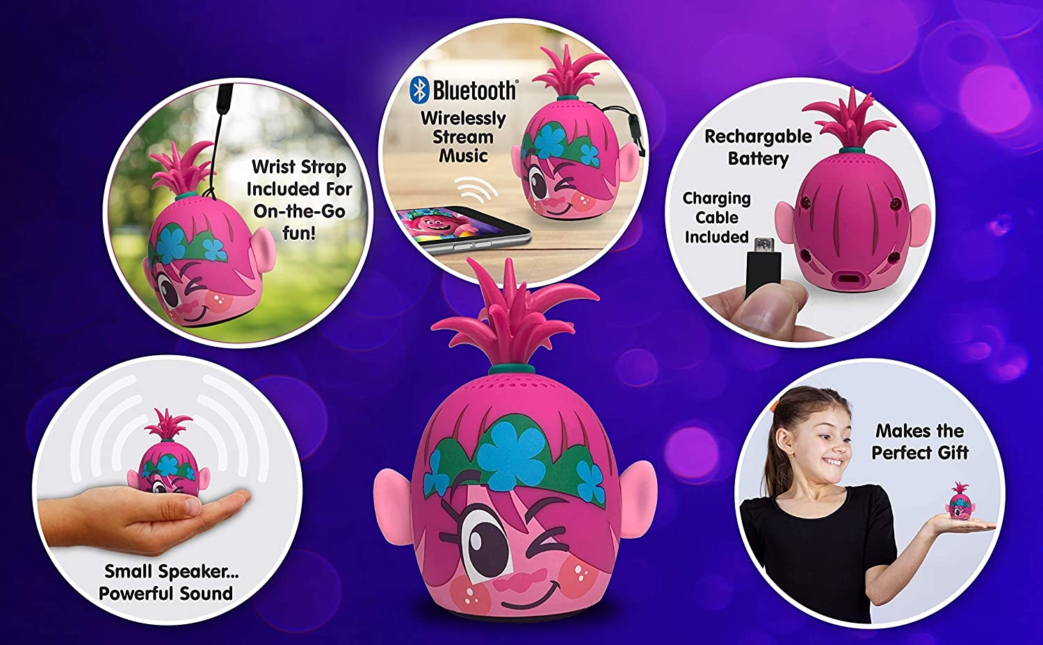 Το ασύρματο bluetooth ηχείο της eKids με τον απίθανο χαρακτήρα της Poppy από τα Trolls World Tour της DreamWorks, παρά το μέγεθος του, είναι εκπληκτικά δυνατό και θα σε απορροφήσει στην μουσική σου, εντός ή εκτός σπιτιού. Η μεγάλης χωρητικότητας μπαταρία του προσφέρει πολλές ώρες διασκέδασης με μία πλήρη φόρτιση, ενώ χάρη στο λουράκι του μπορεί να κρεμαστεί παντού!