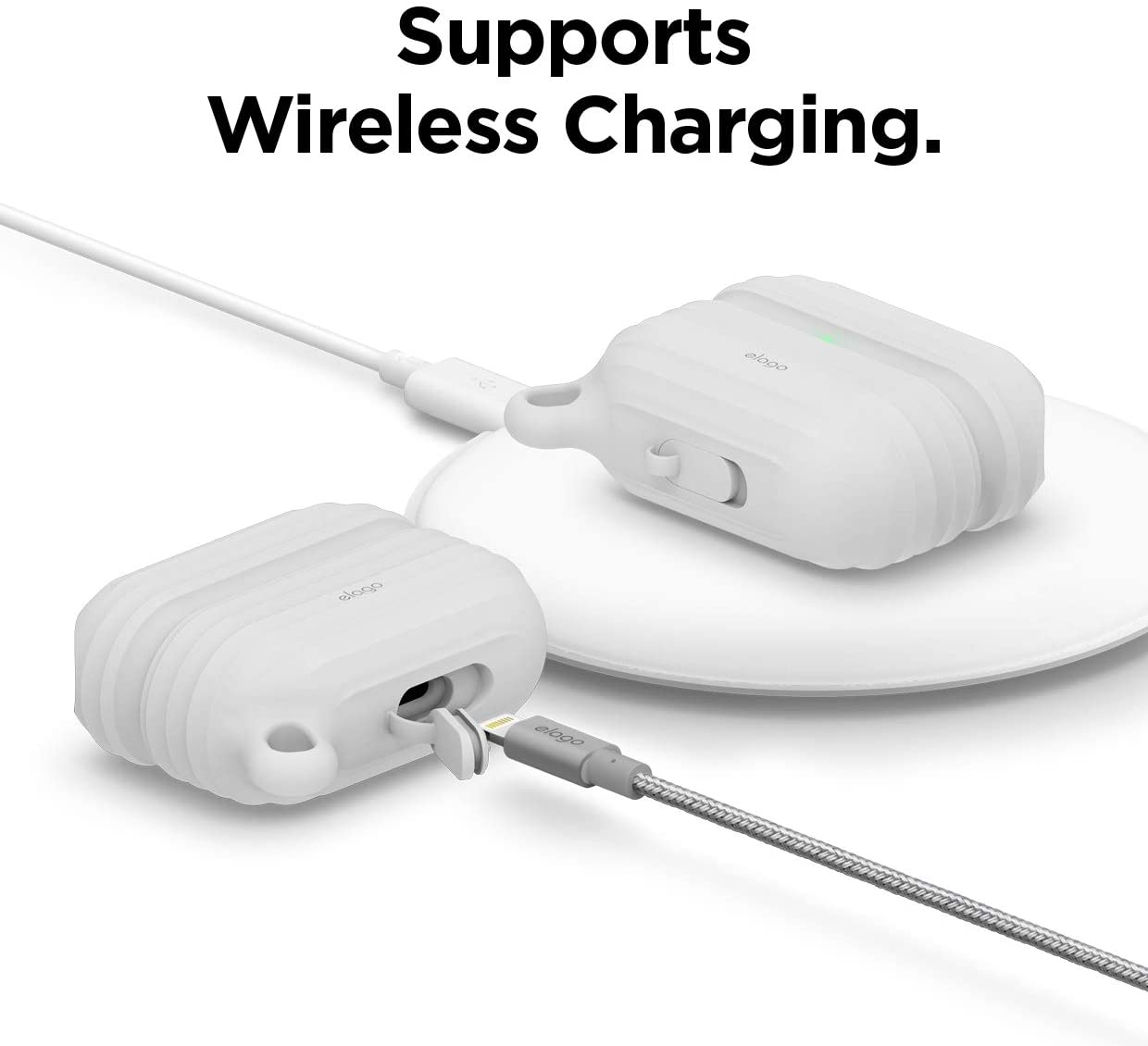 Παρέχει άμεση πρόσβαση στην υποδοχή Lightning για να φορτίζετε τα ακουστικά σας χωρίς να χρειάζεται να αφαιρείτε τη θήκη. Υποστηρίζει ακόμη και την ασύρματη φόρτιση. Τέλος, μπορείτε να ενεργοποιήσετε τα AirPods και πάλι χωρίς τα βγάλετε από τη θήκη, αφού το κουμπί στο πίσω μέρος παραμένει προσβάσιμο.