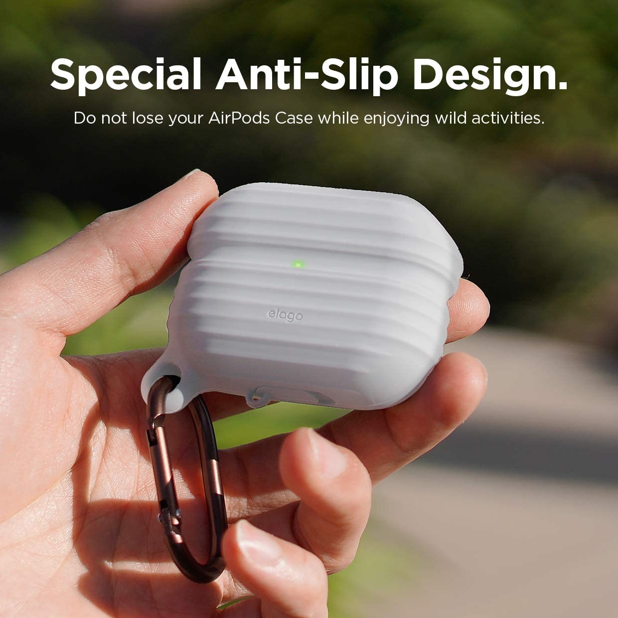 Το design της , εξασφαλίζει ότι η βρωμιά και το νερό δε θα τη διαπεράσουν και ότι τα AirPods Pro σας θα παραμείνουν προστατευμένα. Το καπάκι της θύρας φόρτισης δημιουργεί ένα αόρατο στρώμα ασφαλείας, όπως και οι υπόλοιπες προστατευτικές στρώσεις. Είναι μια απόλυτα αντιολισθητική θήκη προκειμένου να μη σας γλιστράει από τα χέρια ή τις επιφάνειες.
