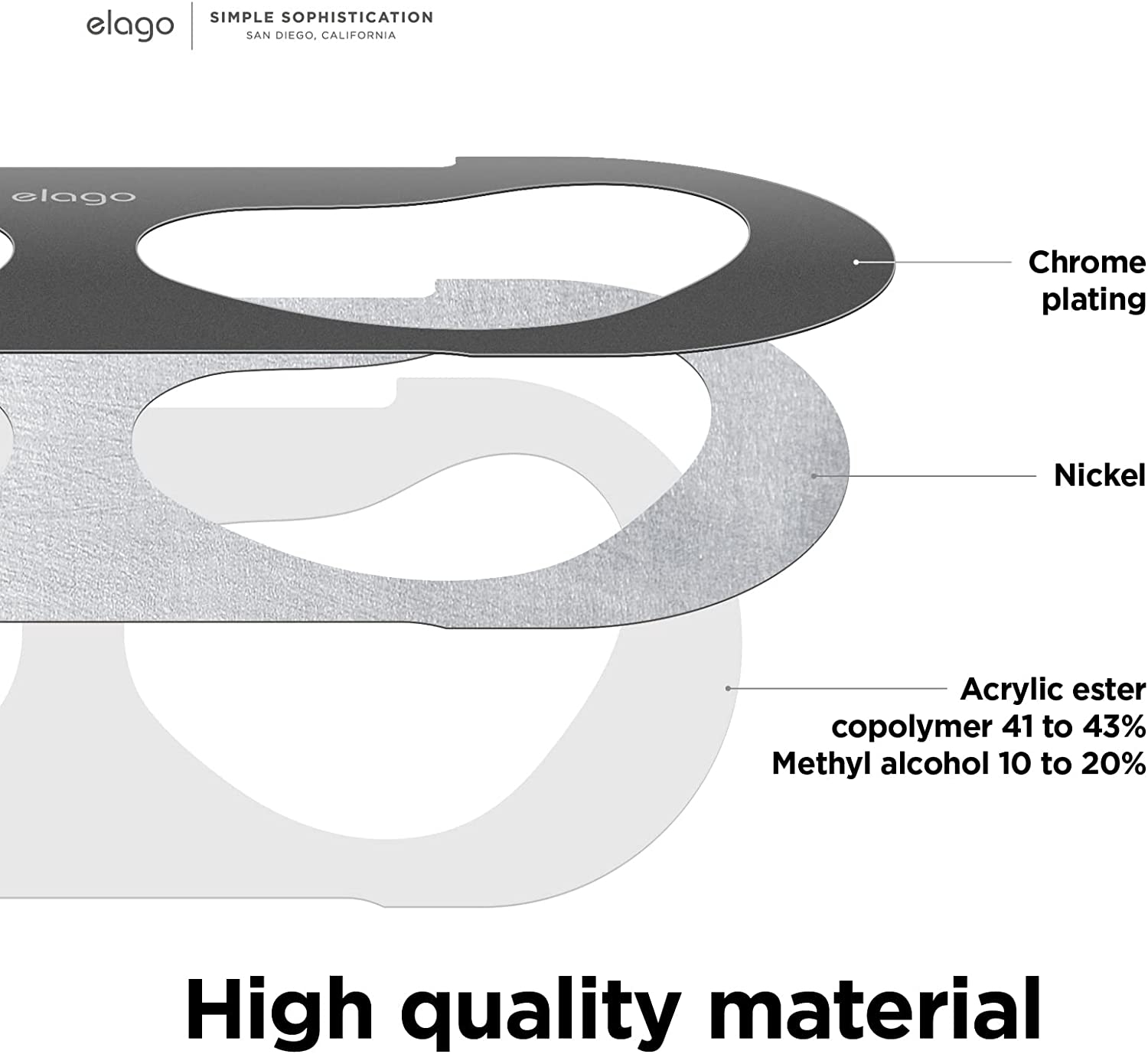 Αποτελείται από υψηλής ποιότητας υλικά, 3 στρώσεων, όπως επιχρωμιωμένο μέταλλο, νικέλιο και ακριλικό εστέρα. Το μεταλλικό φινίρισμα προσθέτει εκπληκτική εμφάνιση στη θήκη φόρτισής σας. Διατηρήστε την θήκη σας καθαρή και να μοιάζει για μεγάλο χρονικό διάστημα σαν καινούργια!