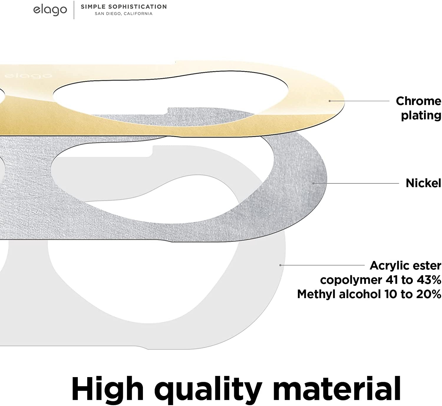 Αποτελείται από υψηλής ποιότητας υλικά, 3 στρώσεων, όπως επιχρωμιωμένο μέταλλο, νικέλιο και ακριλικό εστέρα. Το μεταλλικό φινίρισμα προσθέτει εκπληκτική εμφάνιση στη θήκη φόρτισής σας. Διατηρήστε την θήκη σας καθαρή και να μοιάζει για μεγάλο χρονικό διάστημα σαν καινούργια!