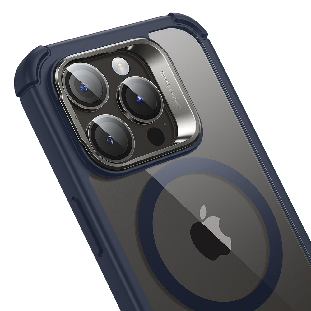 Η θήκη διαθέτει ένα εύκαμπτο και απορροφητικό στρώμα, ανυψωμένη στεφάνη στην οθόνη και στην κάμερα για πρόσθετη προστασία, ενώ το μεταλλικό χείλος της κάμερας μετατρέπεται σε stand και περιστρέφεται από 15 μοίρες μέχρι και 85 μοίρες. Αποτελεί τον ιδανικό τρόπο για την προστασία και μεταφορά του αγαπημένου σας iPhone 15 Pro και δεν προσθέτει όγκο στην συσκευή σας!
