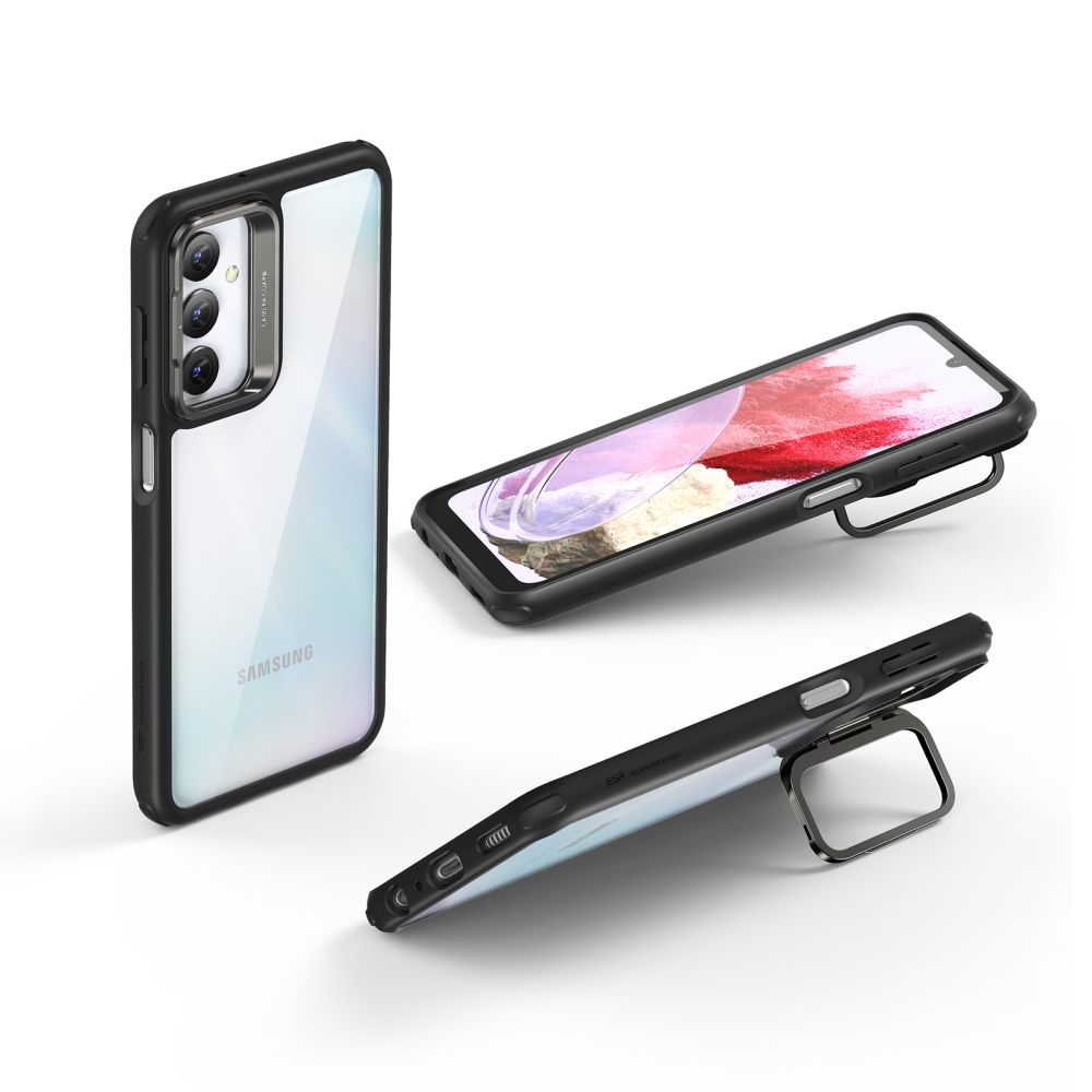 Η θήκη διαθέτει ένα εύκαμπτο και απορροφητικό στρώμα, ανυψωμένη στεφάνη στην οθόνη και στην κάμερα για πρόσθετη προστασία, ενώ το μεταλλικό χείλος της κάμερας μετατρέπεται σε stand και περιστρέφεται μέχρι και 85 μοίρες. Αποτελεί τον ιδανικό τρόπο για την προστασία και μεταφορά του αγαπημένου σας Samsung Galaxy M34 5G και δεν προσθέτει όγκο στην συσκευή σας!