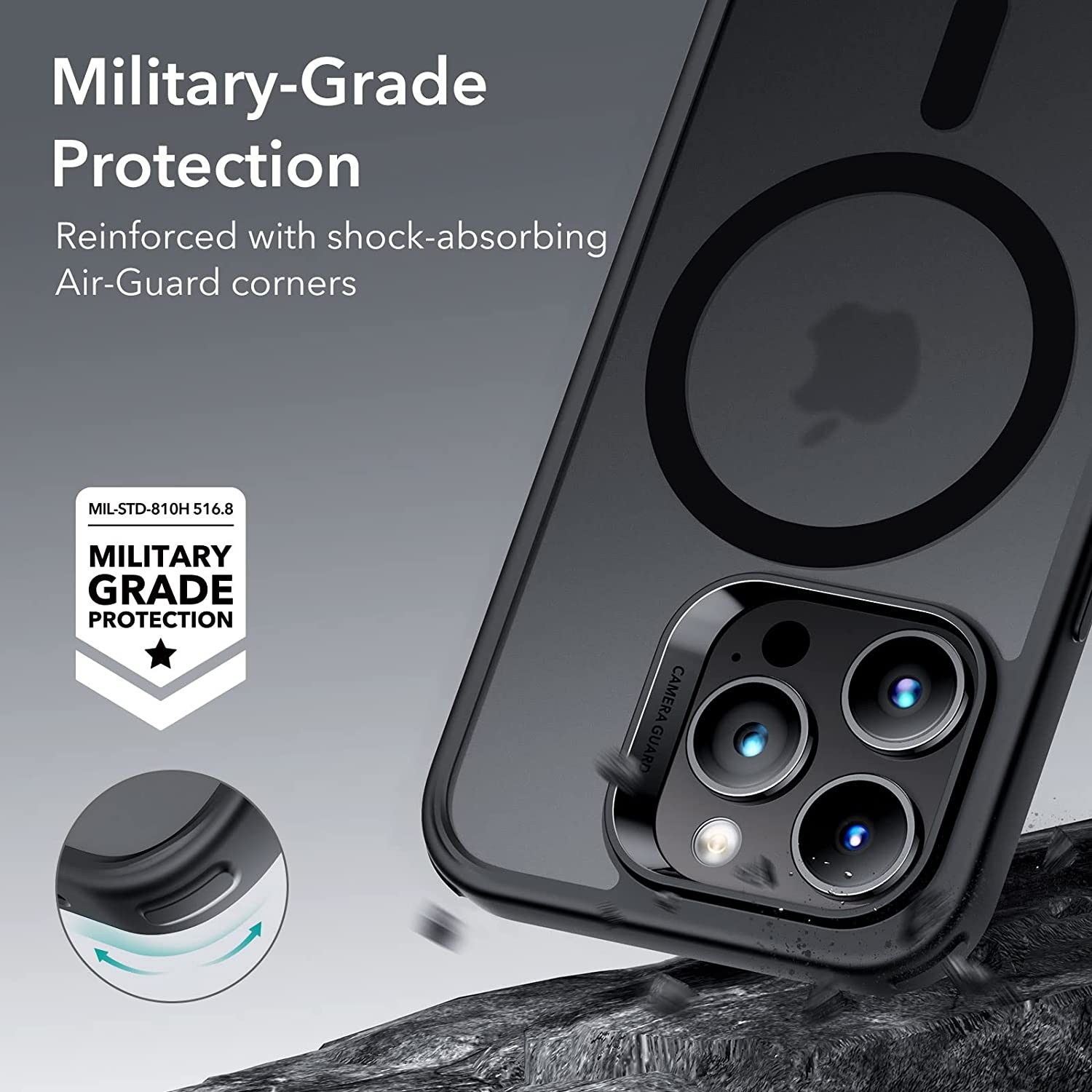Λόγω των ιδιοτήτων του, το πολυανθρακικό στρώμα παρέχει καλή προστασία από πιθανά ατυχήματα στην καθημερινή χρήση, επίσης η θήκη ταιριάζει απόλυτα στο iPhone 14 Pro και δεν περιορίζει τη δυνατότητα ασύρματης φόρτισης. Πληροί το στρατιωτικό πρότυπο αντίστασης MIL STD 810Η 516.8, που σημαίνει ότι είναι ανθεκτικό στις πτώσεις.
