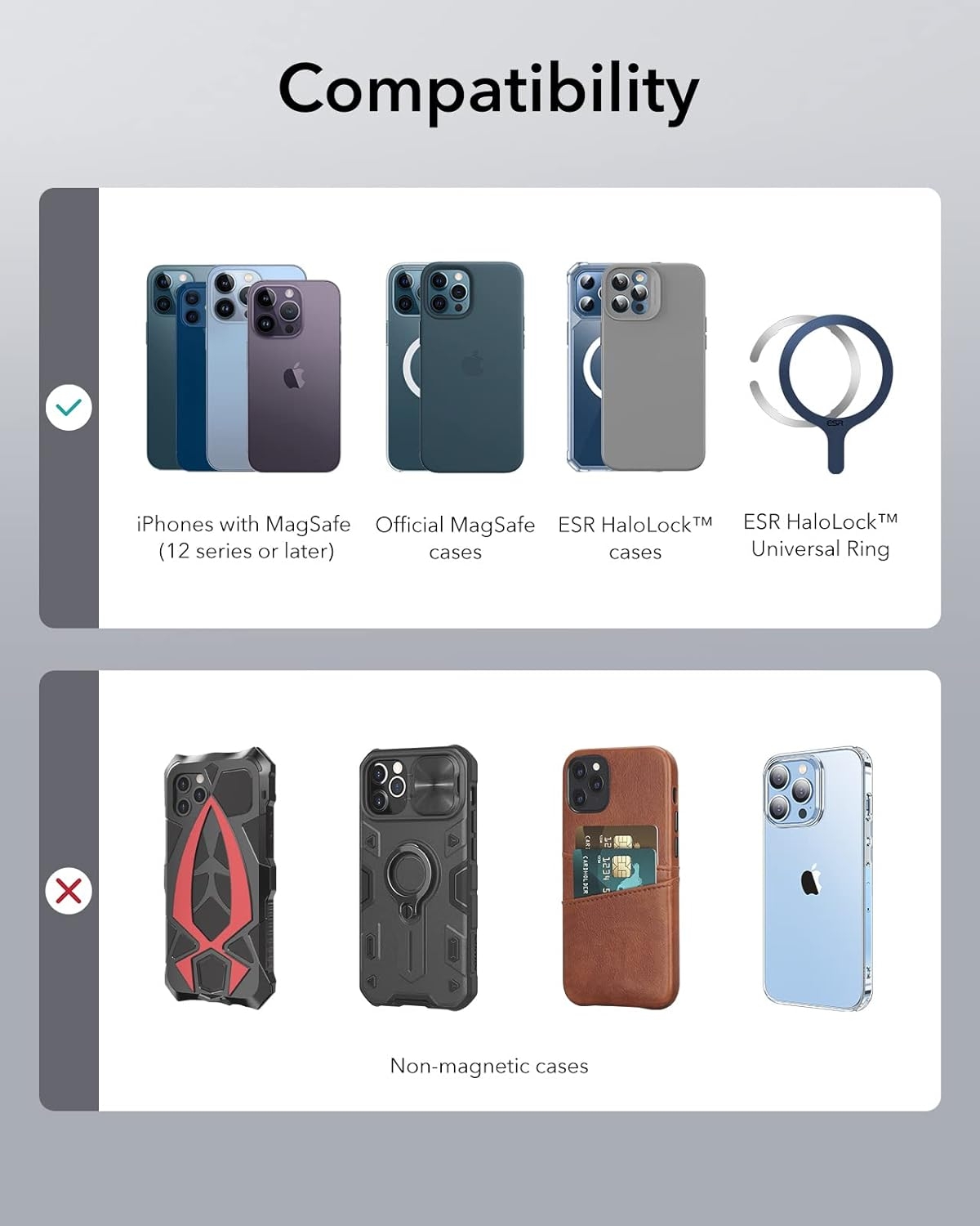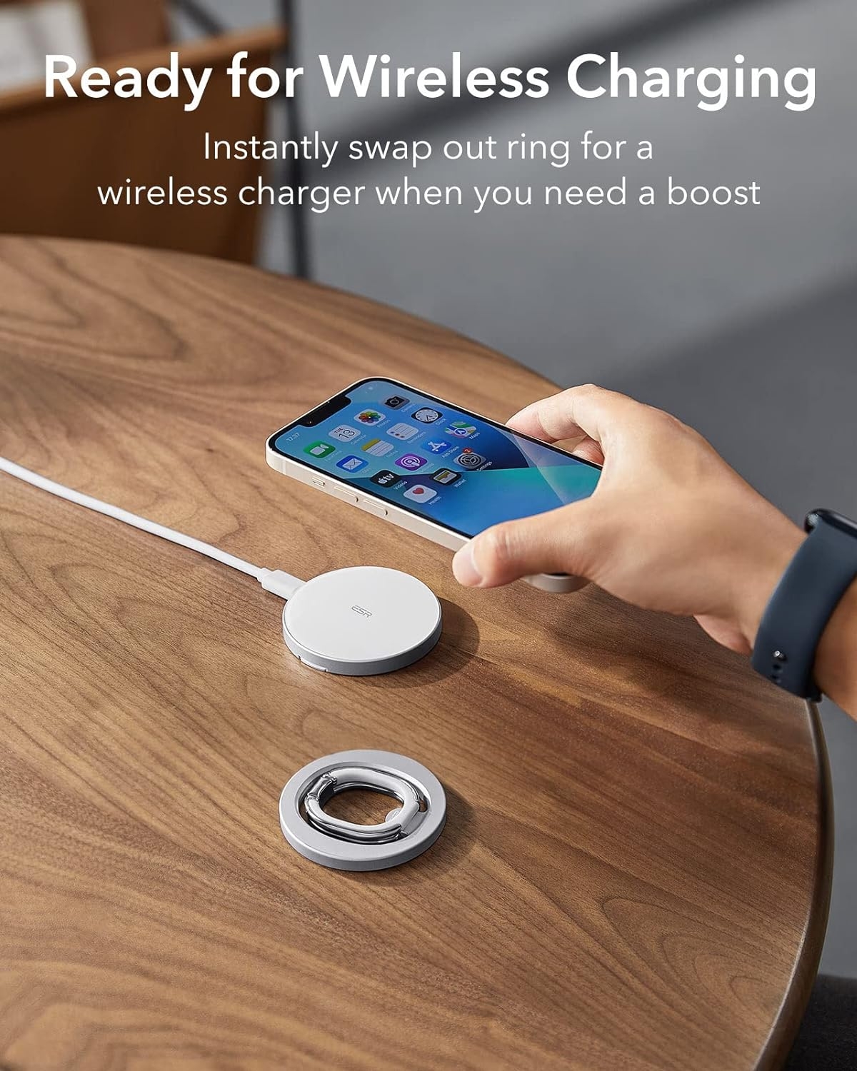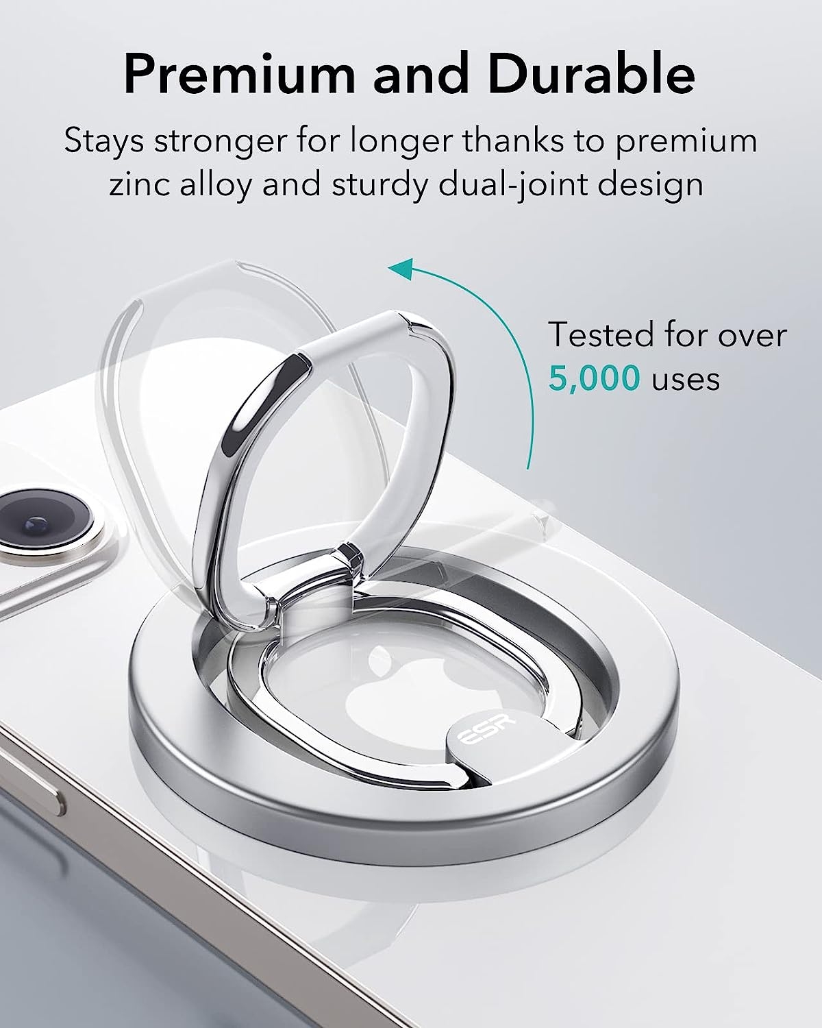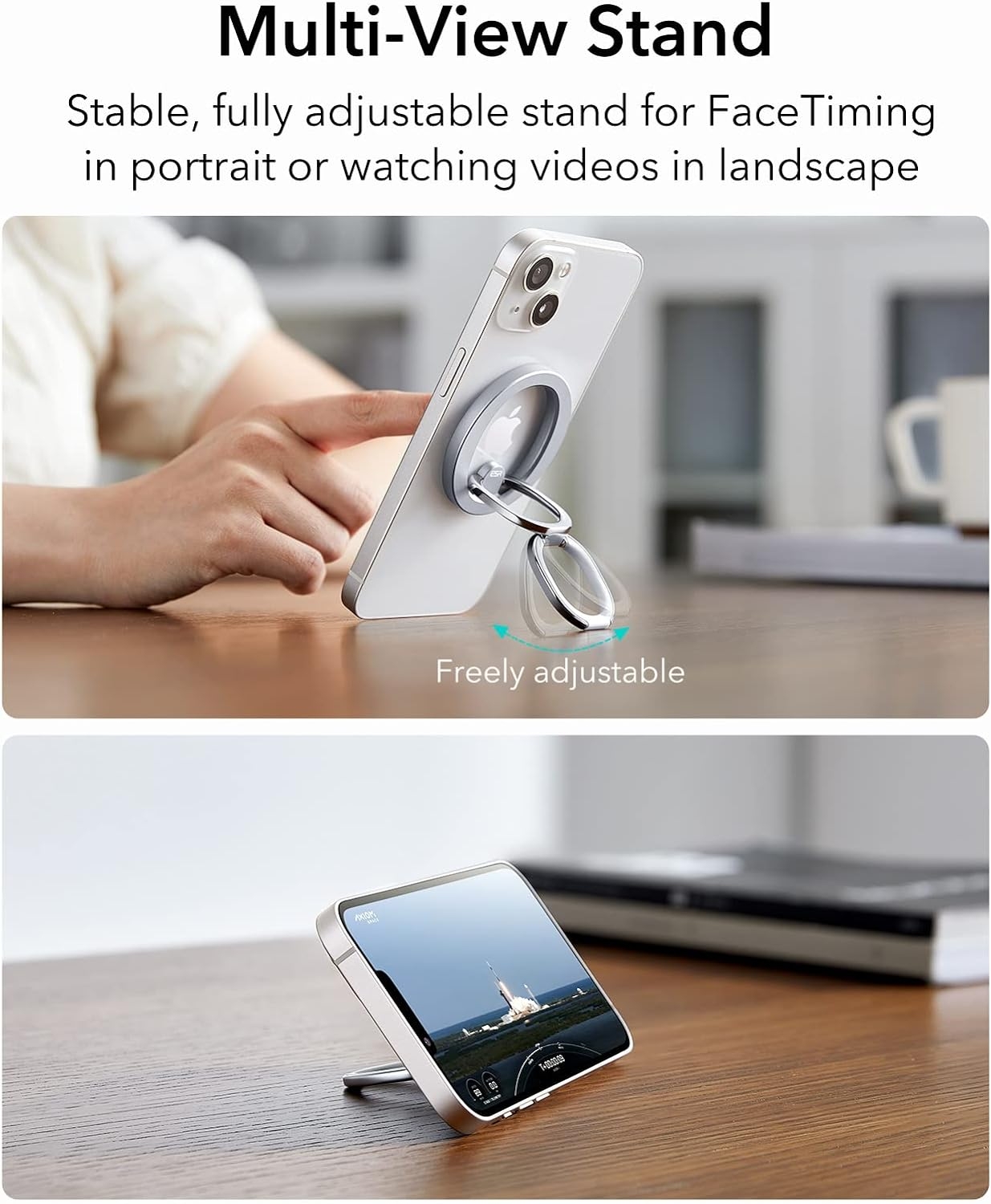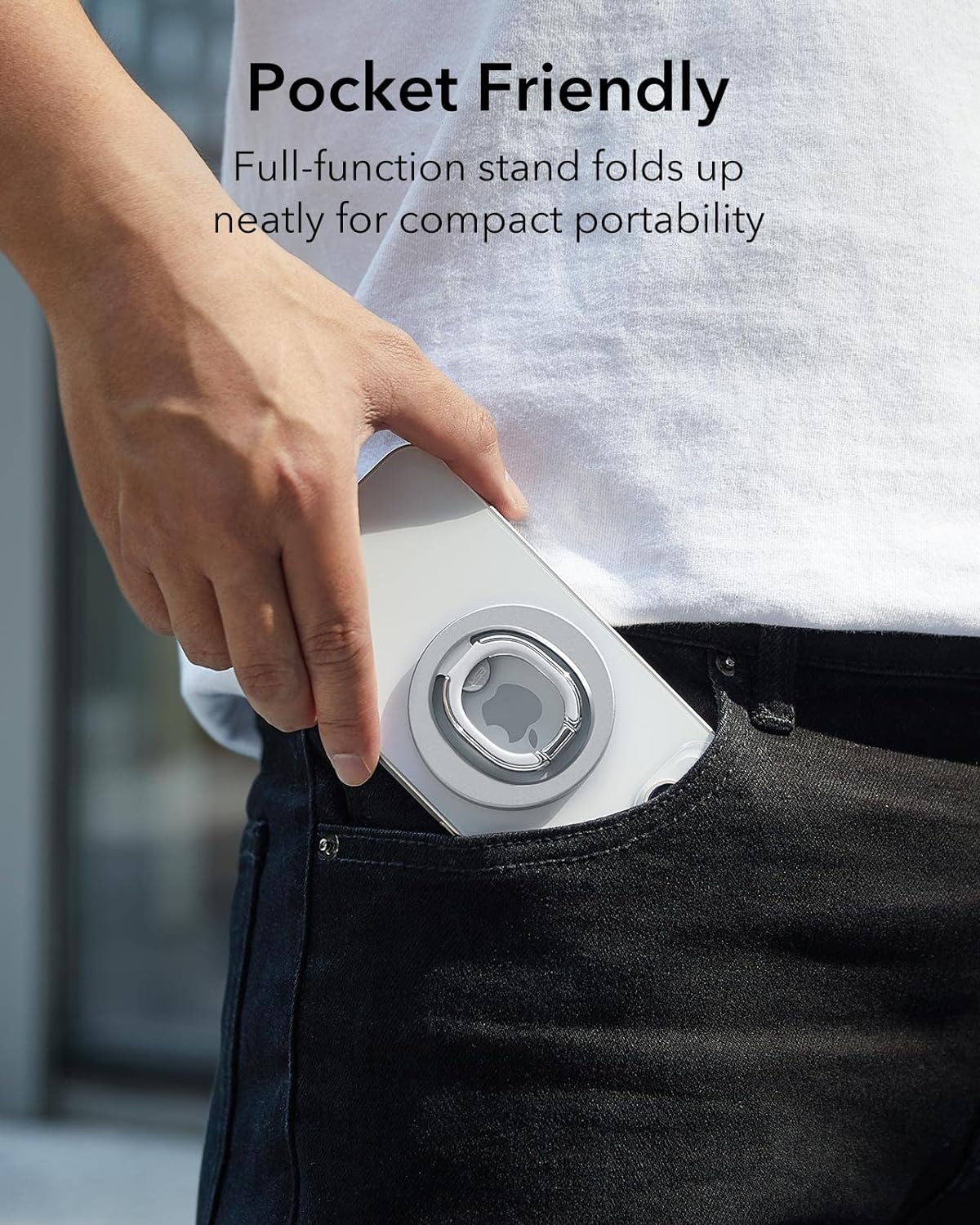 Η βάση HaloLock Ring Stand της ESR, είναι μία άνετη και πολυλειτουργική μεταλλική MagSafe βάση αλλά και ένα Finger Holder, ειδικά σχεδιασμένο για την αγαπημένη σας σειρά iPhone 16, 15, 14, 13 και iPhone 12, προσφέρει ασφαλές κράτημα στη συσκευή σας χωρίς τον κίνδυνο να σας πέσει, χάρη στους ισχυρούς μαγνήτες με δύναμη συγκράτησης 1.200 g.